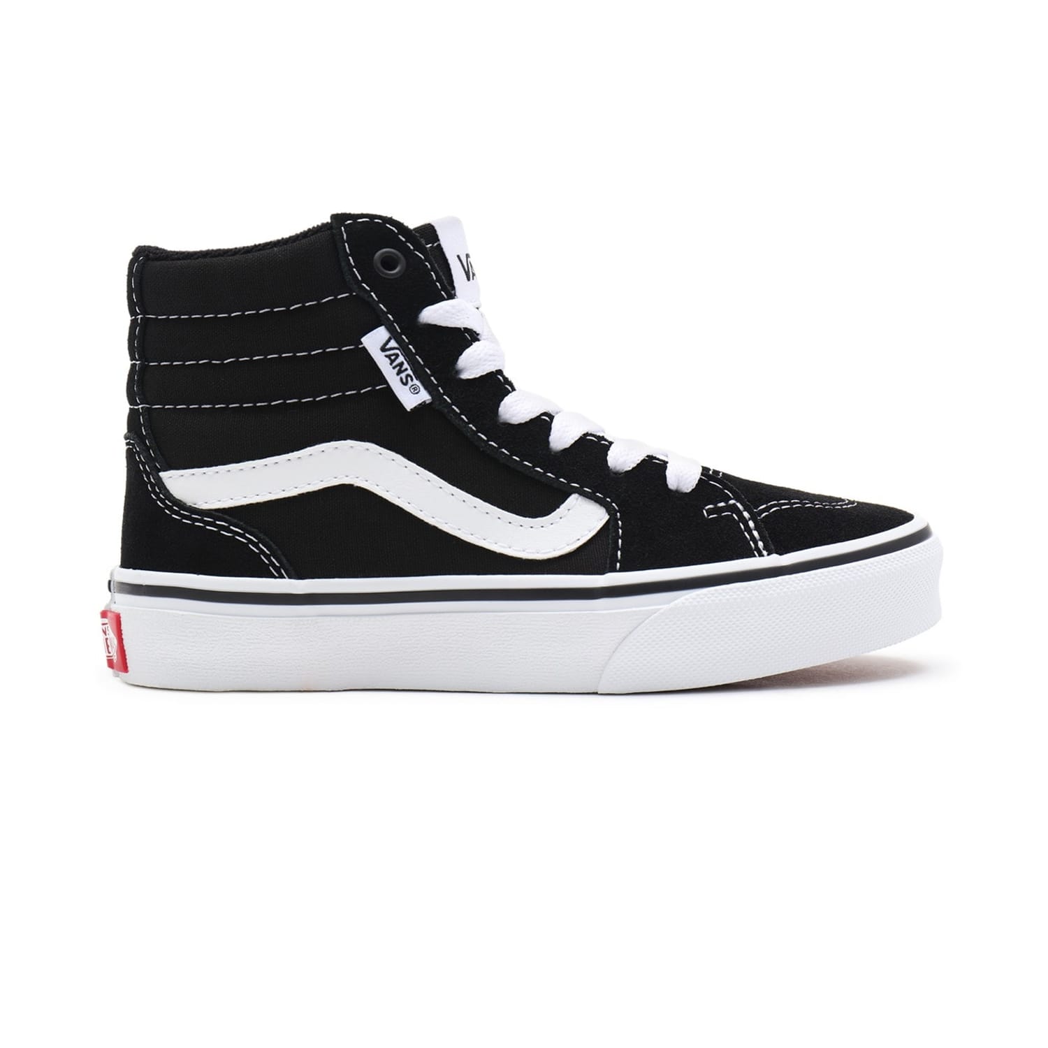 The Filmore High Tops from Vans comes with lace closure and high collar, as well as cushioned collar and tongue. Coming in Black/White colour, these trainers for men sport a suede upper and rubber sole. The look is finished with branding on the tongue and side for brand recognition. -