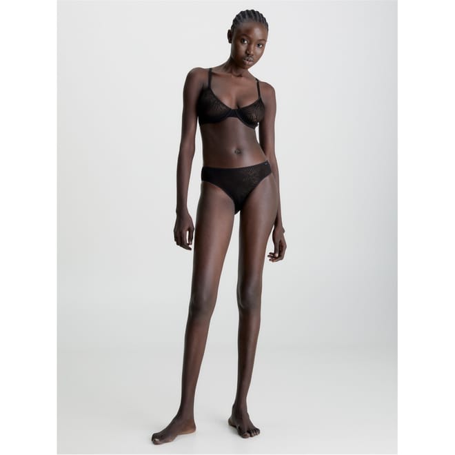 This Calvin Klein Classic relaunched with a significant update throughout. This has been made with recycled nylon mesh, this bikini is double layered for modesty while retaining that semi-sheer signature look.