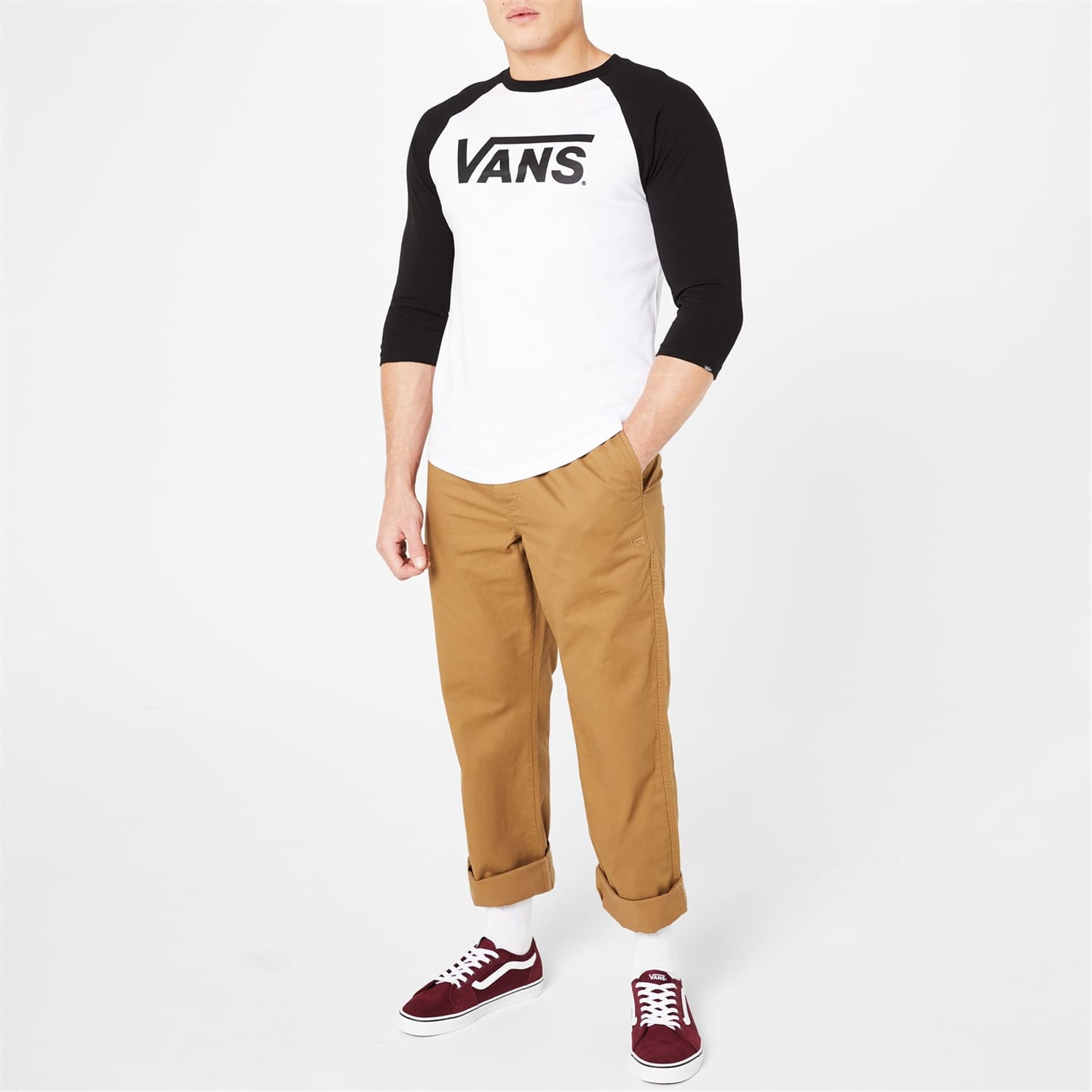 Switch up your casual t-shirt collection with a Vans Raglan T Shirt. This quality cotton t-shirt has been crafted in a regular fit with long sleeves, a crew neckline and a ribbed collar. There is block colour to the chest with contrasting colour to the sleeves. Vans branding is shown proudly at the chest delivering instant brand recognition. -
