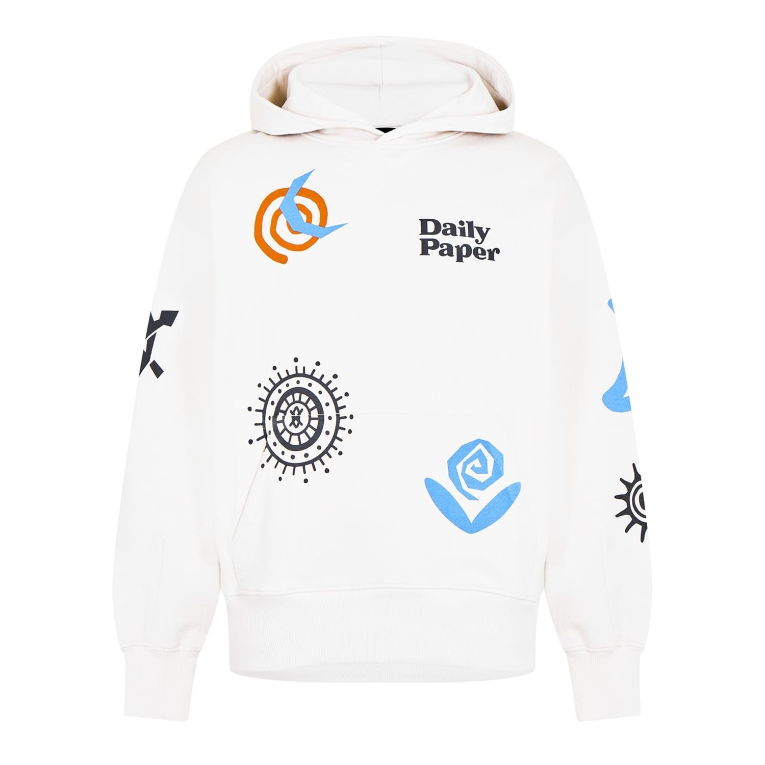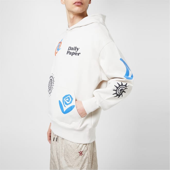 Refresh your off duty graphics with the Puscren Hoodie from Daily Paper. Designed with ribbed trims to the sleeve and hem, this hoodie is cut to an oversized fit with dropped shoulders for easy casual styling. Made from a pure cotton fleece with a kangaroo pocket, this hoodie is finished with multiple branded graphics printed to the front, sleeves and back.