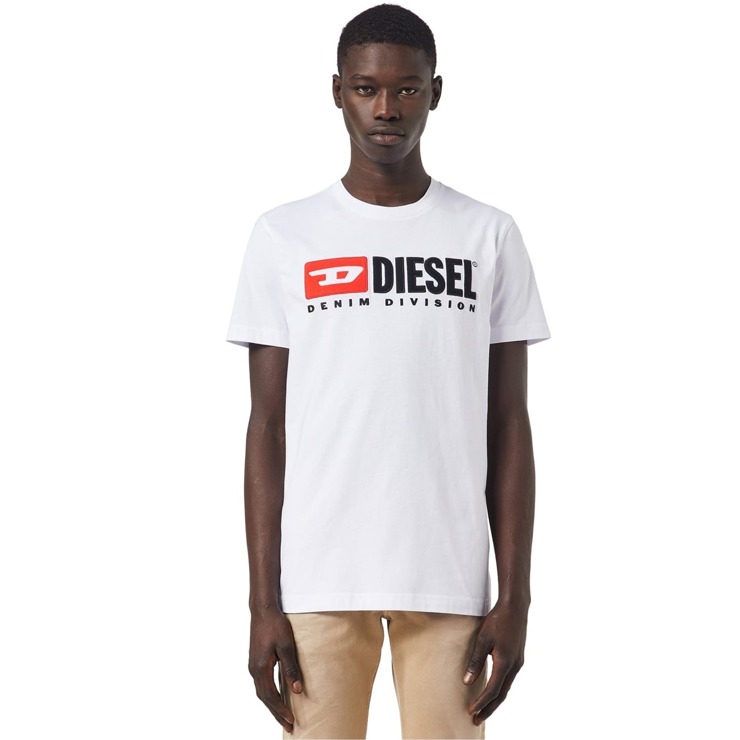 Incorporate luxury into your everyday ensemble with this Diesel T shirt. Simplistic and stylish this pristine piece has been expertly crafted from 100% cotton for a breathable feel that is both comfortable and trendy, ideal for your summer attire with it's lightweight feel. Designed in a timeless colour way for a traditional look, elevated by the central embroidered Diesel logo for a distinctive touch that achieves instant brand recognition. Offering short sleeves, round collar and straight hem, this look makes for easy styling, pair with your favourite cargos for a street edge look or jeans to keep it causal. Machine Wash to care instructions.