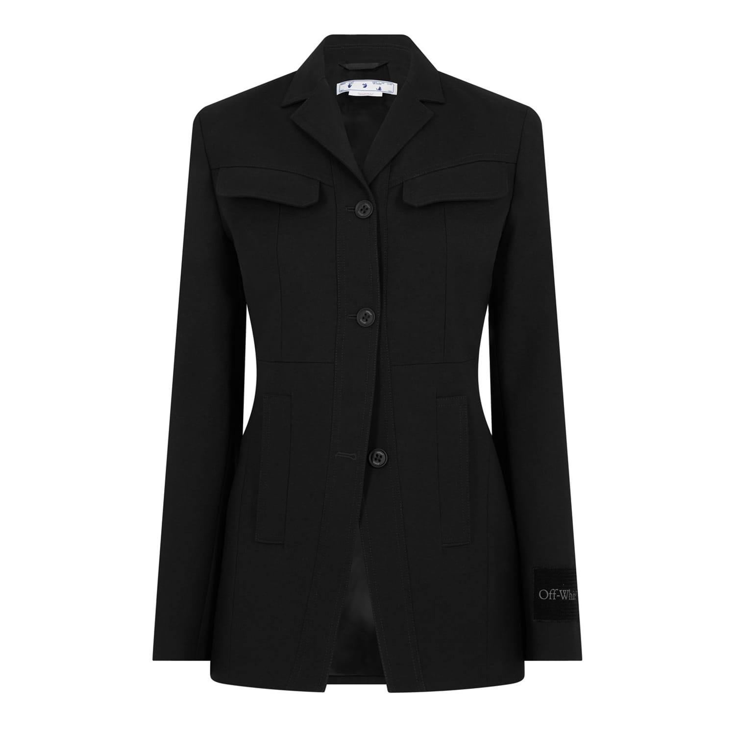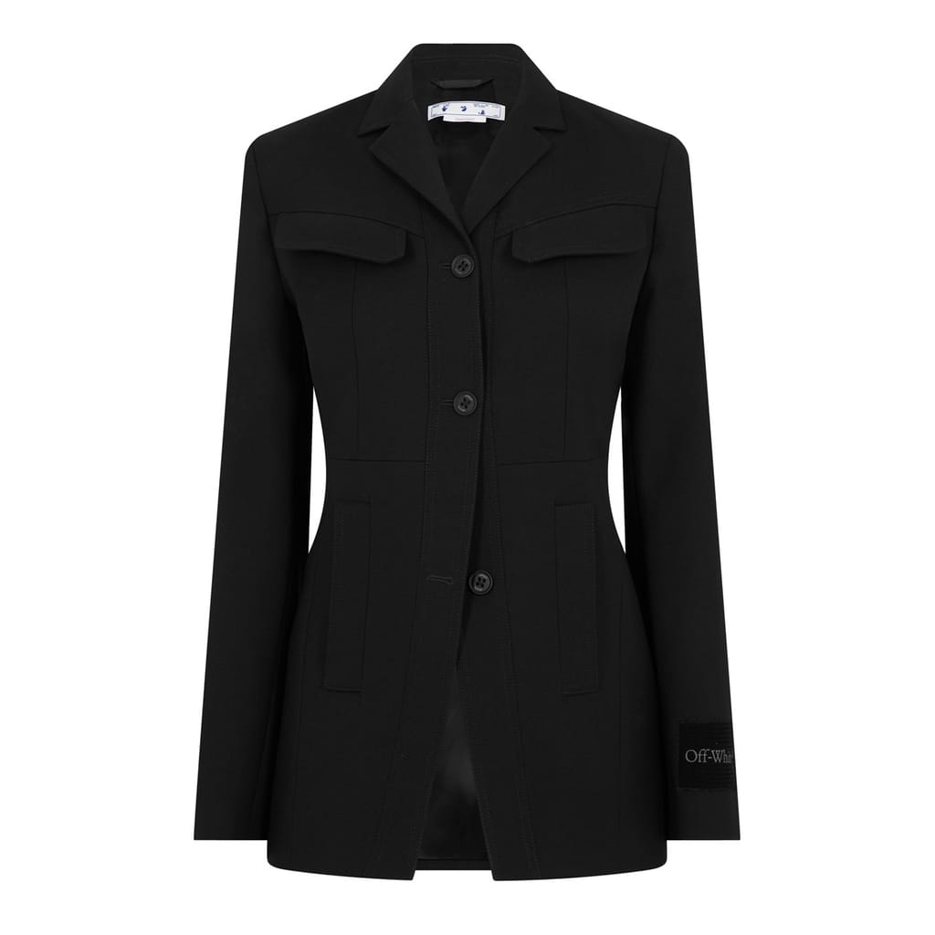 Elevate your casual wardrobe with the Toy Box Belted Jacket by Off White. Featuring a virgin wool fabrication coupled button closure, notched lapel and four slip pockets. A tailored design with a wide belt to the waist and a solid colouring that gives a smart, statement look, finished off with the classic Off White branding. Main: 100% virgin wool, Lining: 53% viscose, 47% cupro, dry clean only.