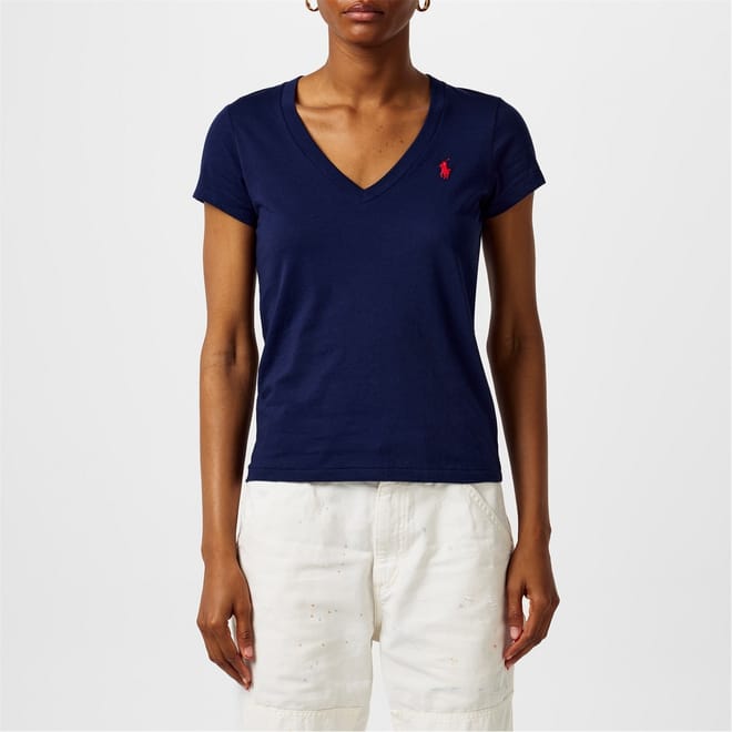 Elevate your wardrobe staples with Polo Ralph Lauren's signature Jersey V-Neck T-Shirt. Washed for added softness and exceptionally designed to suit every occasion, this women's tee is perfect for lounging at home after a busy weekend, casual day trips with friends and family, or running errands in your downtime.