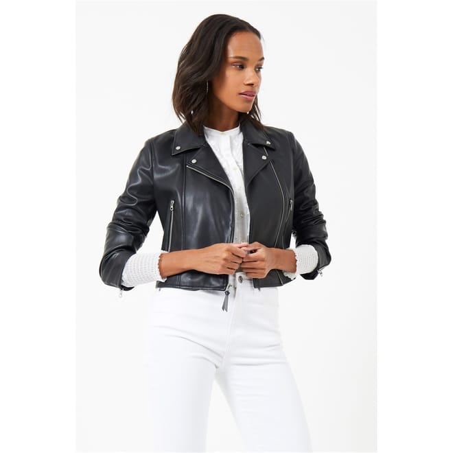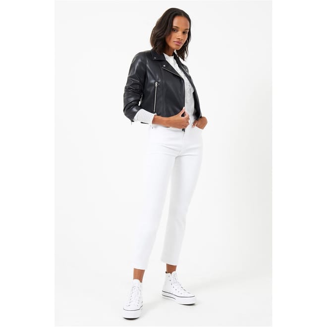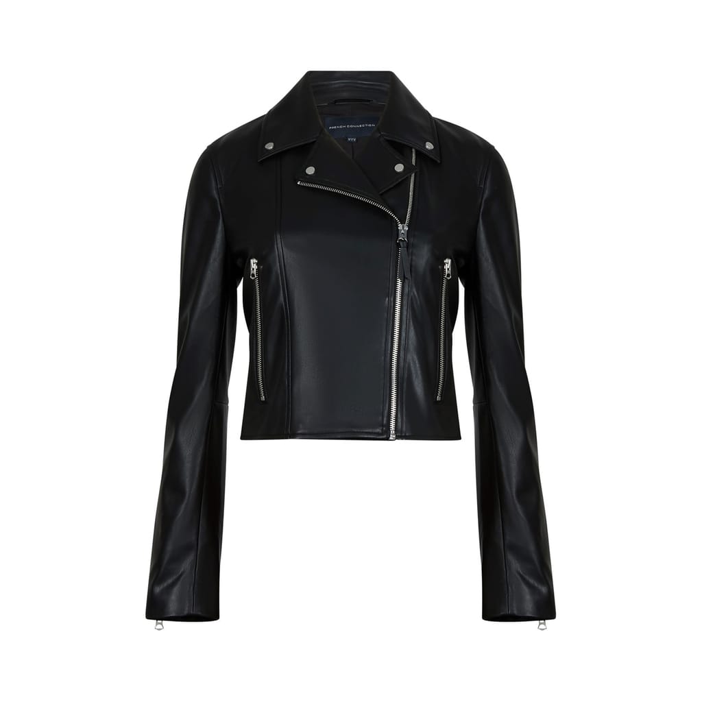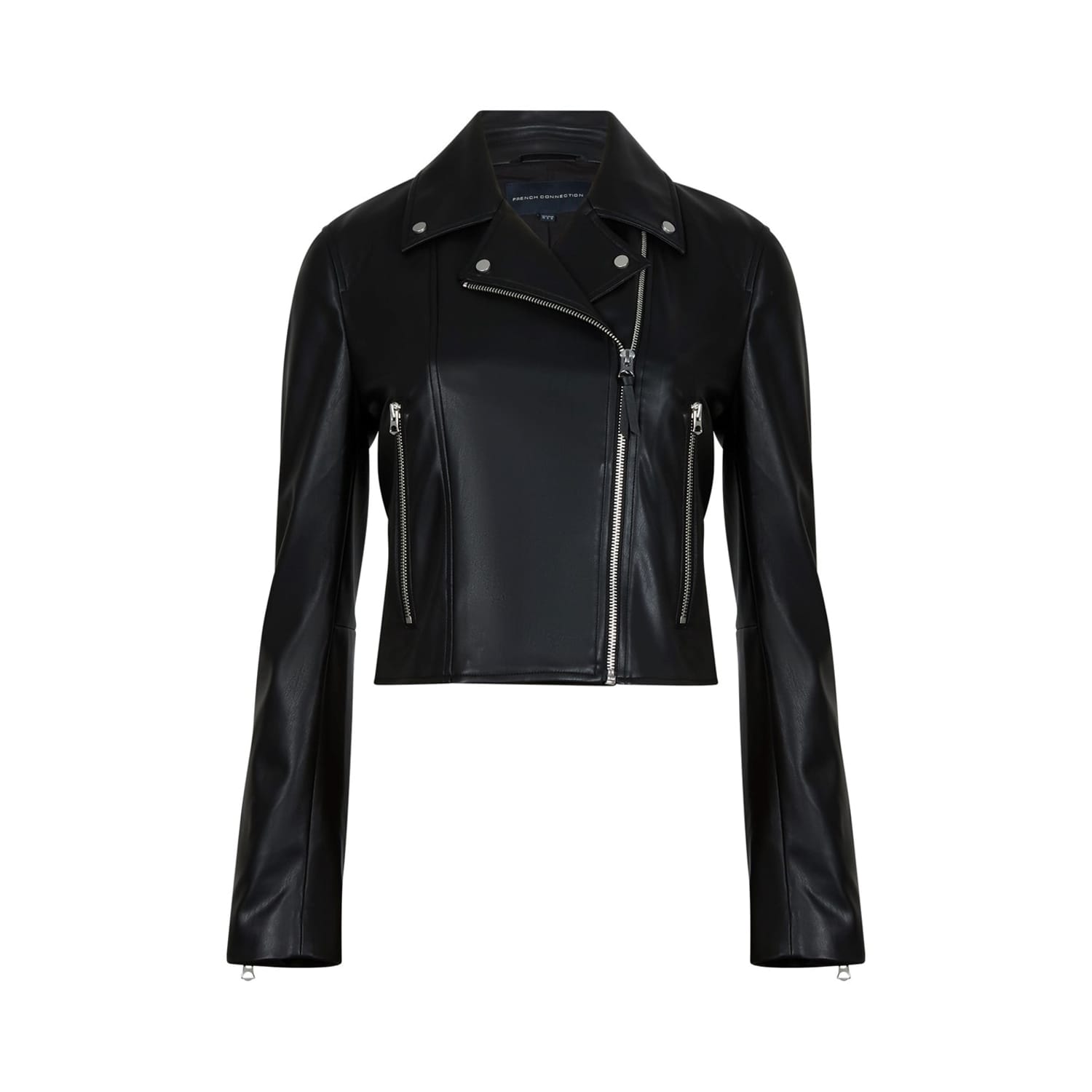 Embrace the chic and elegant style of the French Connection with this Etta PU Faux Leather Biker Jacket. Crafted with PU leather to create a smooth and glossy finish that exudes sophistication. Boasting metallic details of collar poppers and zip-fastened pockets, sleeves, and bodice add a touch of edginess to this rebellious design. With its long sleeves adorned with zip detailing, this jacket is not just a fashion statement, but a practical choice as well.