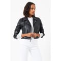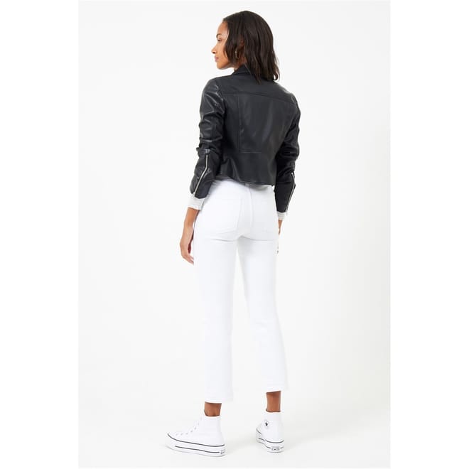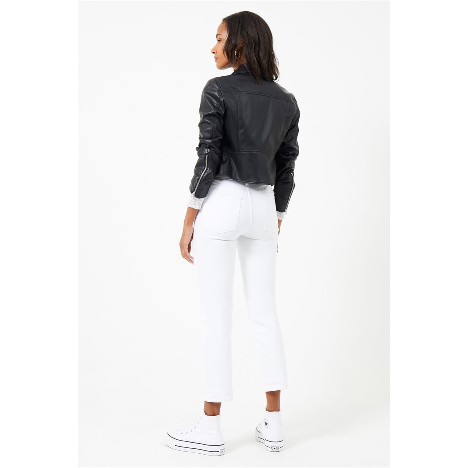 - The two zip-up pockets provide a stylish yet functional space to carry your essentials, while the peplum back adds a feminine flair to the biker style, striking the perfect balance between contemporary and classic styles. The jacket has a slim fit, accentuating your curves in all the right places. Whether you're stepping out for a night on the town or adding an extra layer of style to your everyday ensemble, the Etta PU Faux Leather Biker Jacket is the perfect companion.
