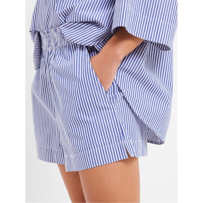 Elevate your smart casual attire with this Rhodes Shirt by French Connection. Effortlessly exude elegance in this suave and crisp look, expertly crafted from 100% cotton creating a lightweight, breathable wear that is both comfortable and sumptuous making a voluminous addition to your daily attire. Designed in preppy vertical stripe design in chic hues of blue and white. Offering a spread collar, partial button placket and dropped collar for a relaxed fit. Pair with linen trousers to complete the chic ensemble. Machine Wash according to care instructions.