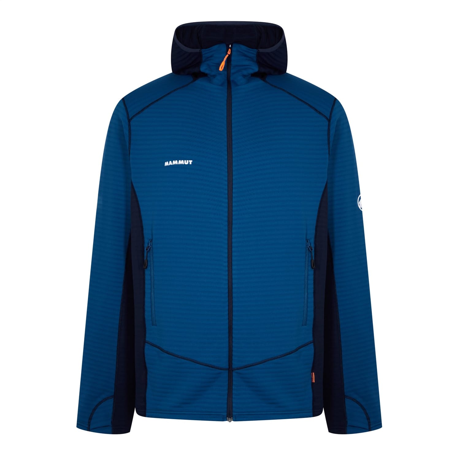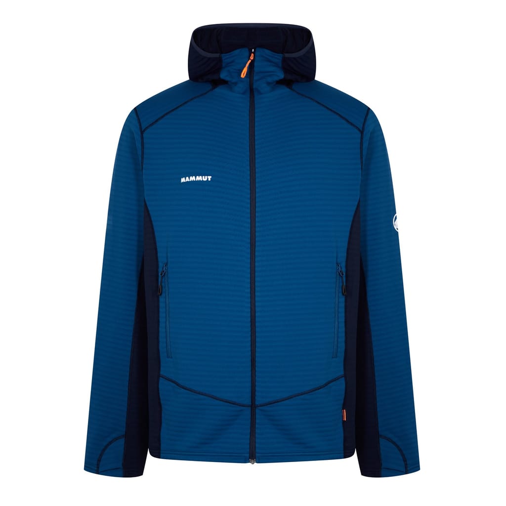 This Mammut outerwear top features a hooded neck and a convenient zipper closure. Designed with long sleeves and a regular fit, it offers comfort and style. The ribbed pattern adds a touch of texture, while the logo embellishment provides a subtle brand detail. -