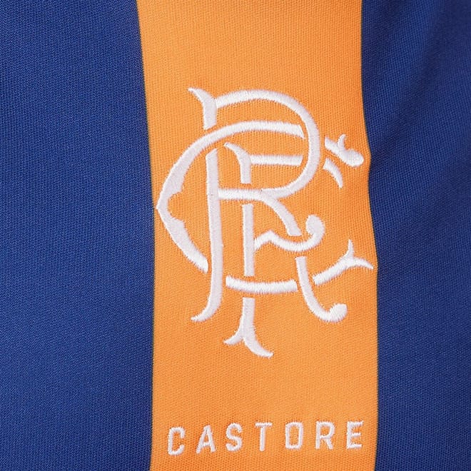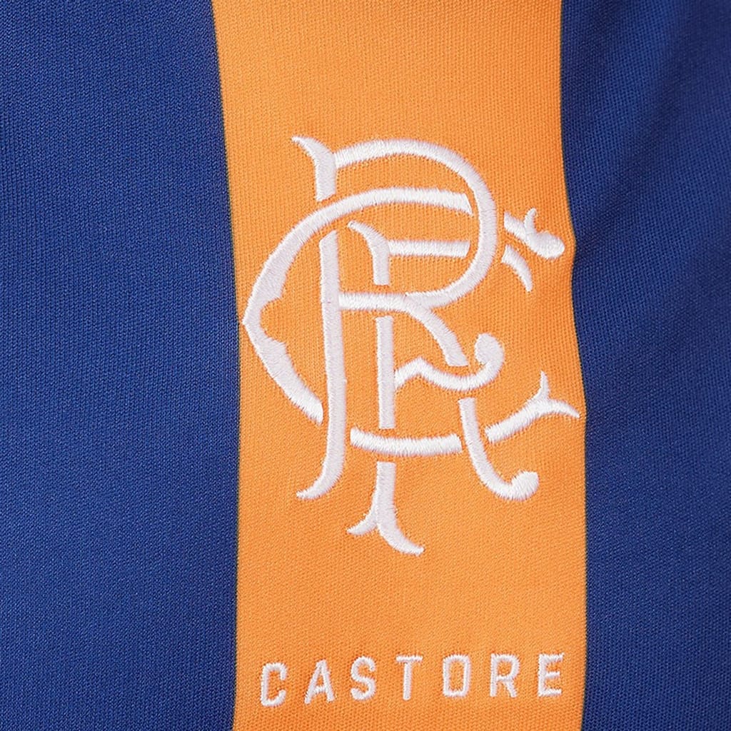 The Castore Rangers Third Shirt 2023 2024 is a must have for pledging your alliance to The Gers. Crafted from a lightweight polyester with moisture wicking properties to keep you cool and dry as you cheer on from the sidelines, the short sleeves and ribbed neckline add a classic touch. Landing in vibrant blue and orange stripes for a distinctive look, the team badge at the centre of the chest completes the sporty piece. -