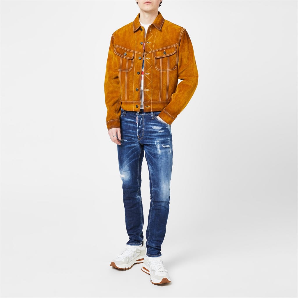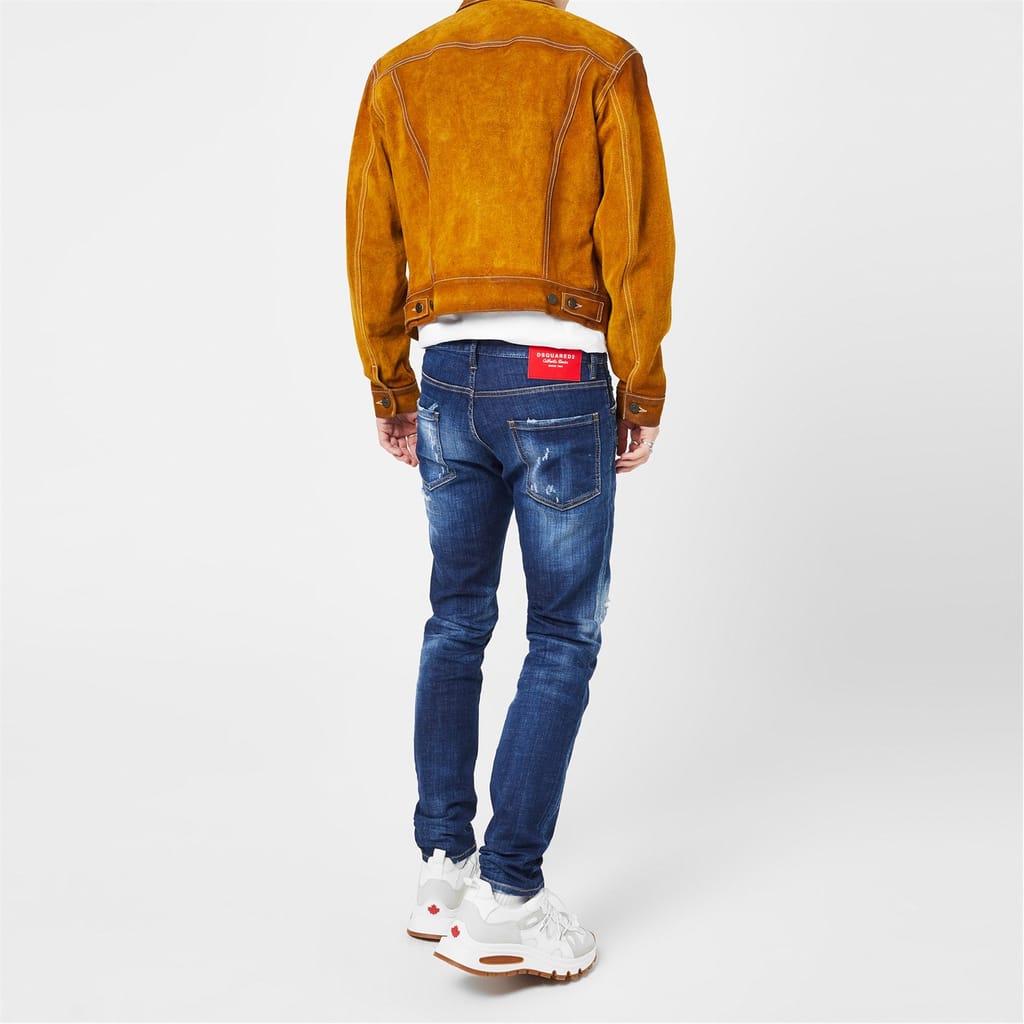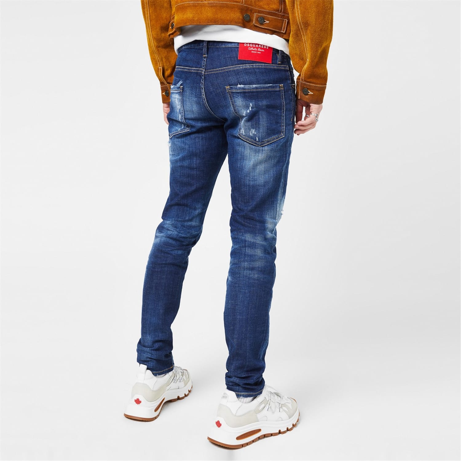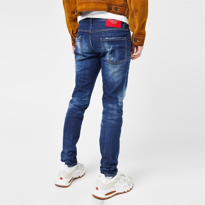 Dsquared2 are the ideal choice to add to your collection. Artfully constructed from a midweight cotton twill, this pair feature the classic 5 pocket design, a central zip fly with a button closing, and belt loops. Decorated in a traditional dark indigo wash, the design features fading and distressed detailing for the ultimate pre-loved look. Always refer to and follow garment labelling for washing instructions and best wear.