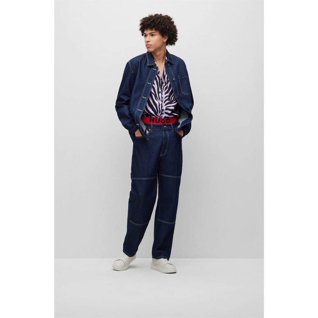 Add a contemporary touch to your casual collection with the Hugo Contrast Stitch Denim Jeans. Styled in a straight-leg silhouette this pair is finished in a dark wash for a retro double denim look. Whether going out for evenings or on a casual day out these versatile jeans are perfect for your everyday wardrobe.