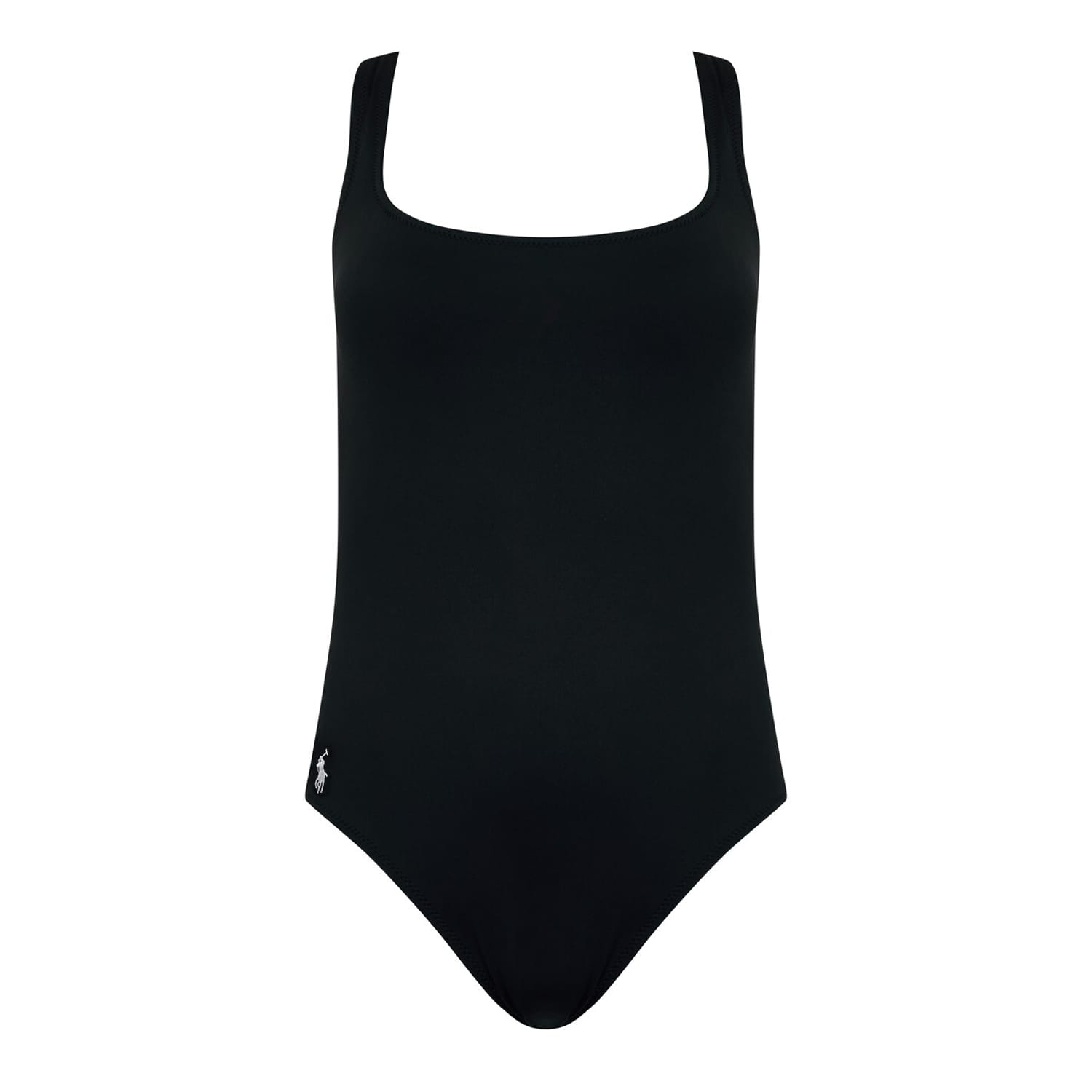 Dive into the summer season in style with the Polo Ralph Lauren Scoopback One-Piece Swimsuit, a versatile staple destined for your warm-weather wardrobe. Designed with a sleek silhouette and solid colouring, this swimming costume will seamlessly transition from glamorous pool parties to relaxing beach days, cementing its position as a must-have on every vacation packing list.