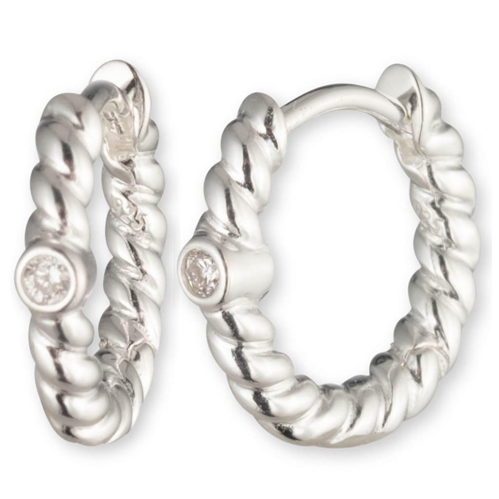 Lauren Ralph Lauren Sterling Silver Rope Twist Diamond Hoop Earrings