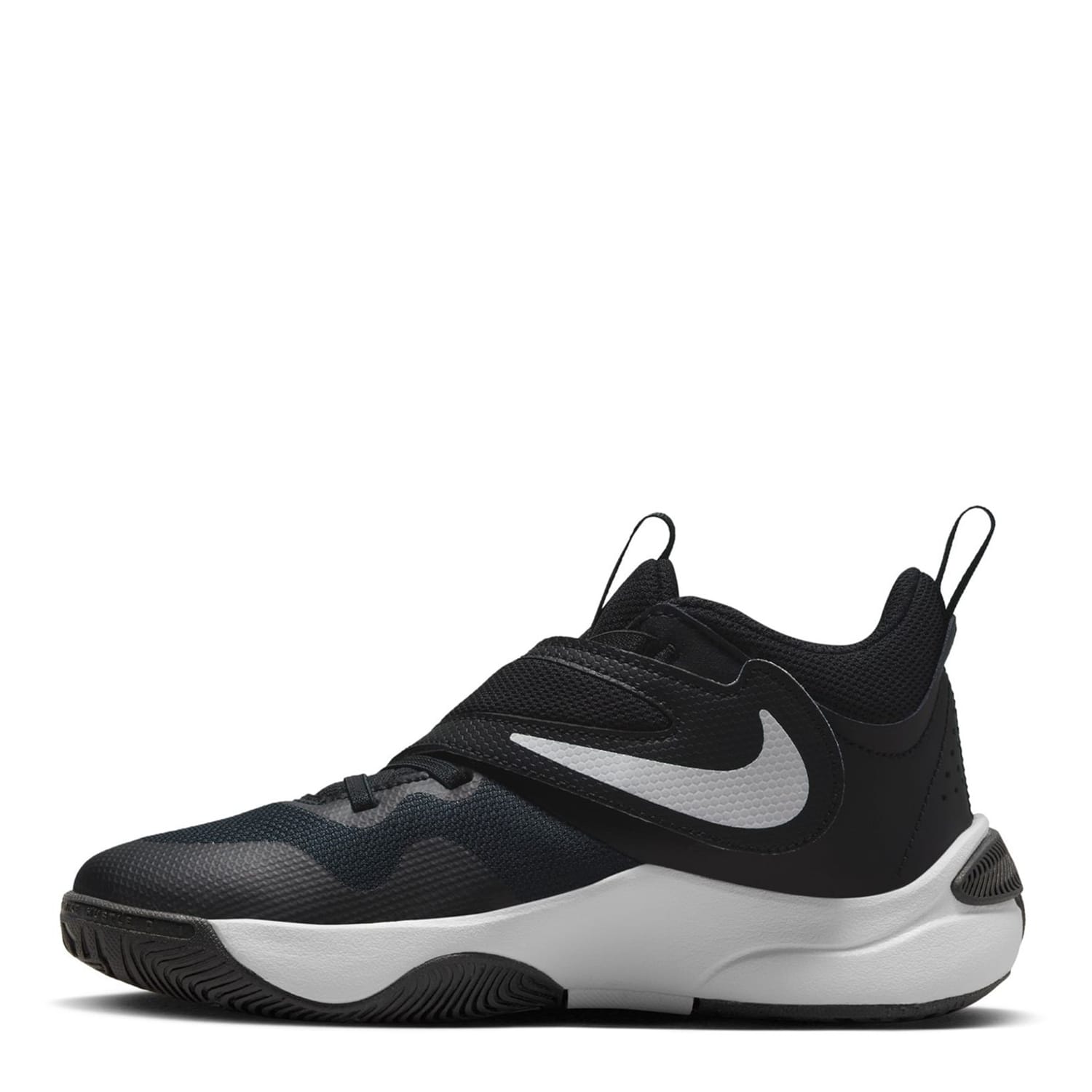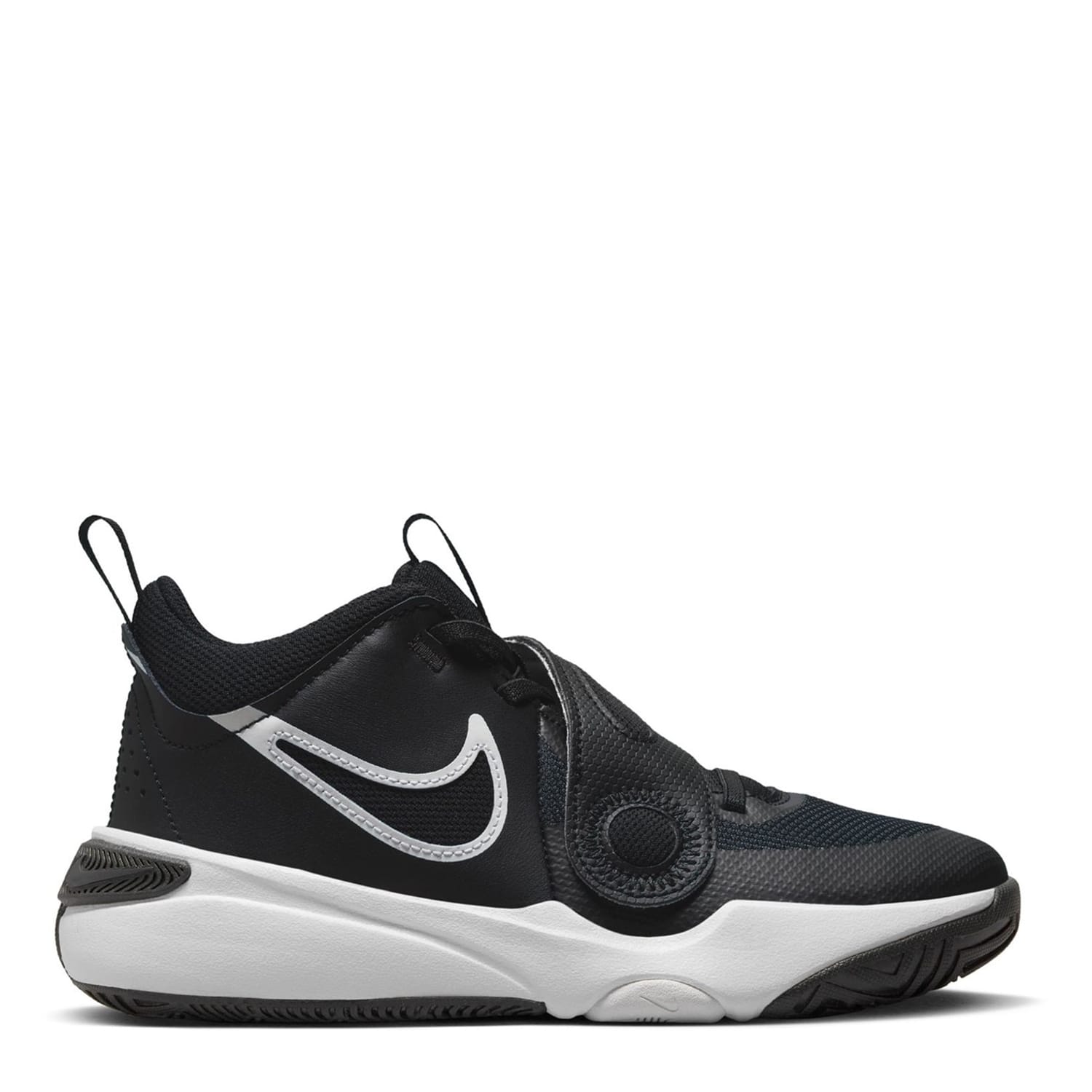 The Nike Hustle D11 Junior Boys Basketball Trainers are perfect for practise and matches, crafted with a high cut padded ankle collar along with two pull tabs to the heel and tongue that allows for an easy on and off, while a classic lacing system with a support strap over the forefoot helps keep the foot locked down and feeling secure. Cushioning to the midsole and insole provides responsive comfort, while the moulded outsole with a multi directional tread pattern ensures traction for sudden turns and stops. Contrasting detail to the upper and sole along with the classic Nike Swoosh branding completes the look. -