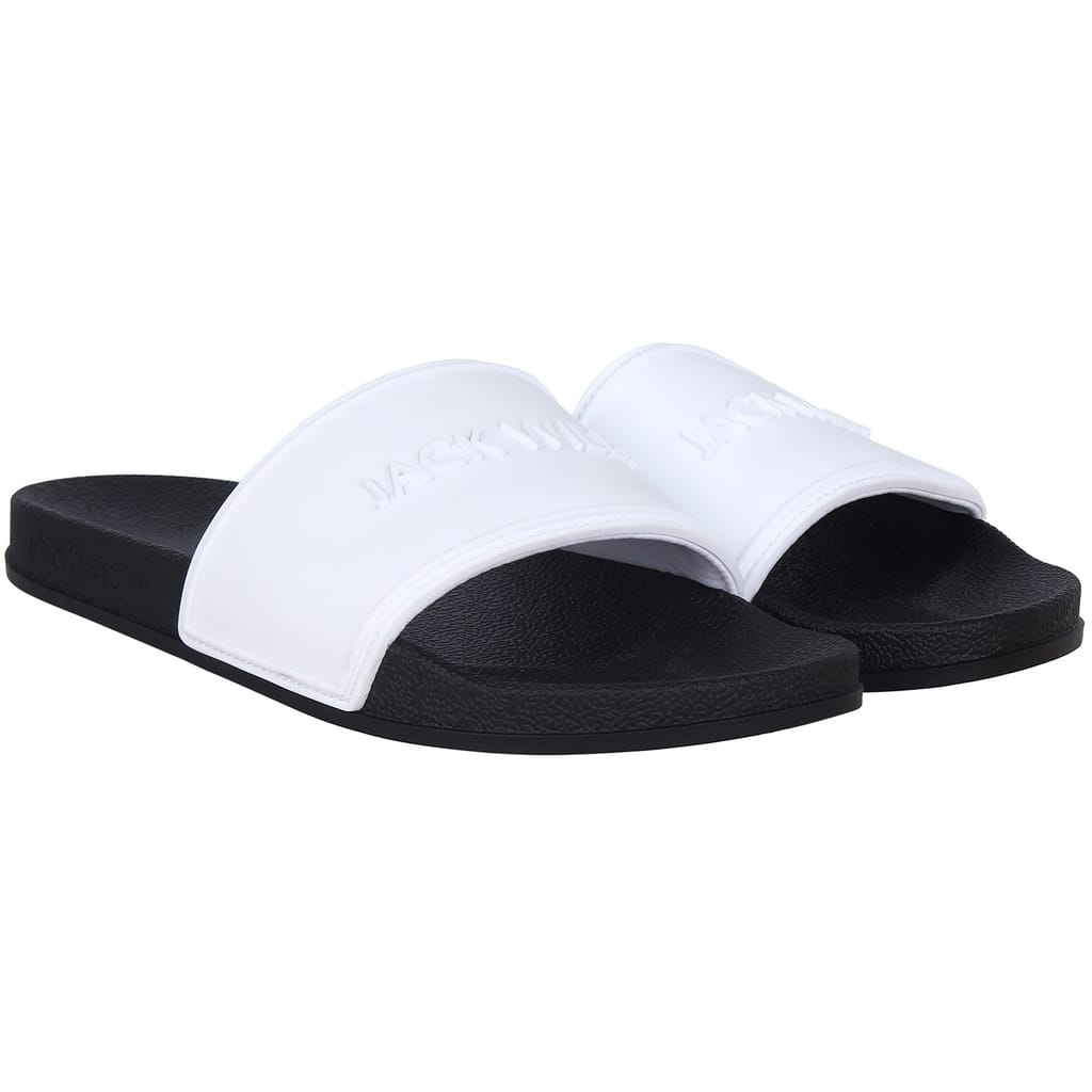 Elevate your summer wardrobe with the Jack Wills Logo Sliders, crafted with a wide forefoot solid colour padded strap, coupled with a contoured footbed and branded sole. -