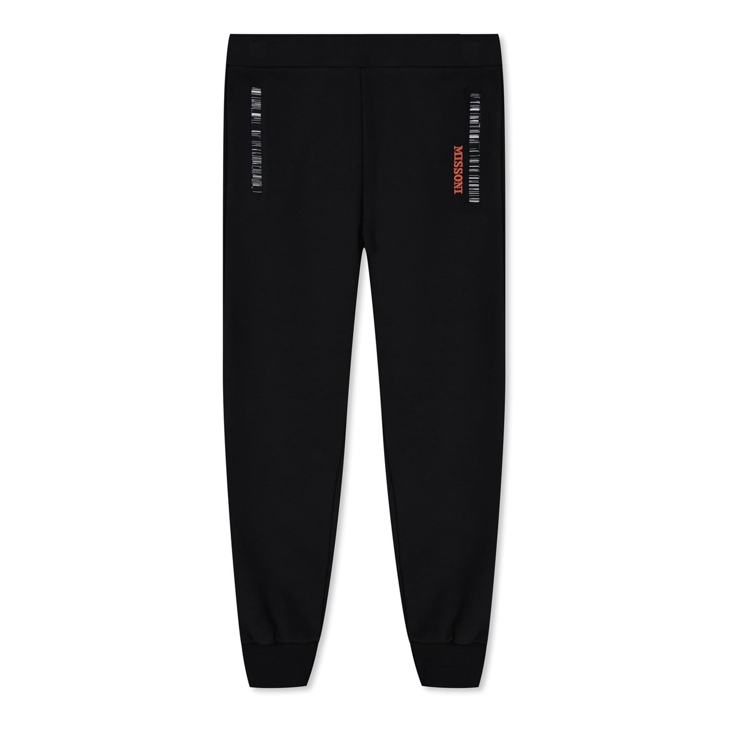 Elevate your youngsters everyday essentials with these premium Logo Joggers from Missoni. Crafted from 100% premium cotton this pair comes cut in a regular waisted, jogger design. Featuring ribbed cuffs and elasticated waistband, two open hand pockets to the sides and two pockets at the rear. The pair are finished in a solid block black colouring and are completed with a contrasting black and white trimming to the side pockets and iconic brand logo embroidered to the front.