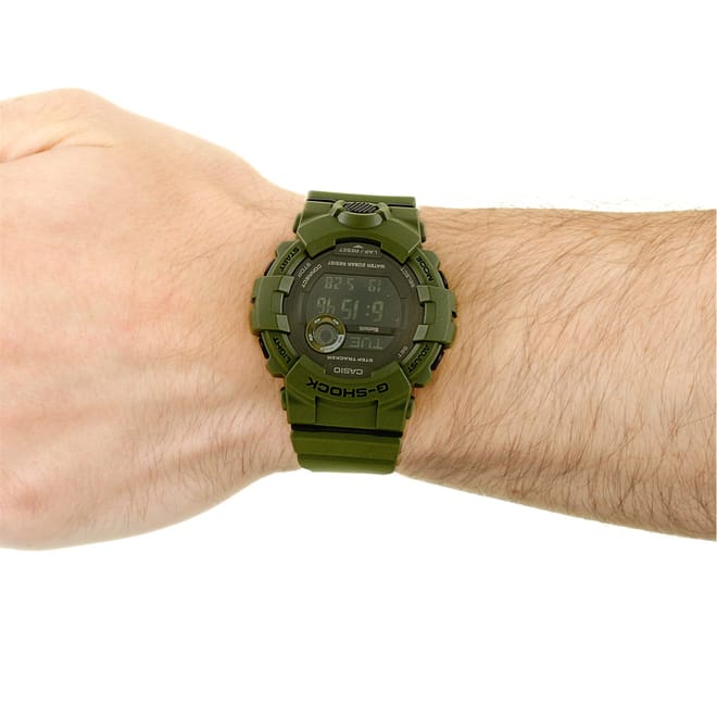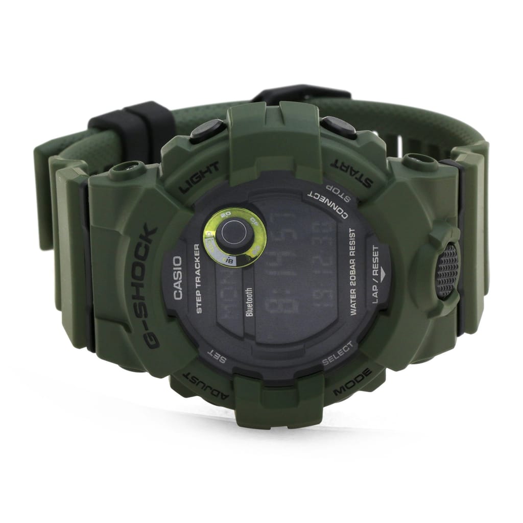 GBD-800 range allow you to link your watch with the G-SHOCK Bluetooth® Connected phone app to provide access to a number of functions that enhance workouts. Daily health and fitness support functions include a 3-axis accelerometer that keeps track of step counts, Auto LED light, Dual Time, Lap memory 200, Stopwatch, and 200M Water resistance also provides essential support to the shock resistant timepiece.