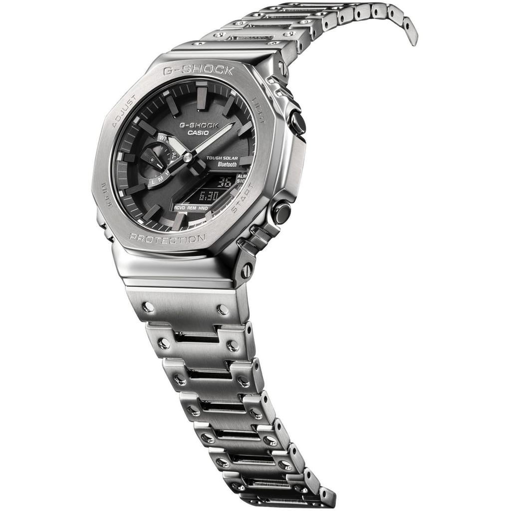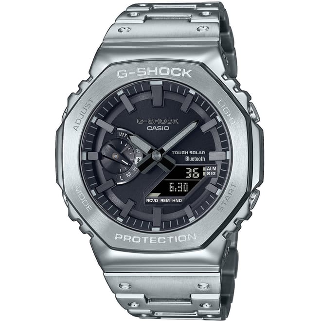 - High-density mounting keeps the analogue-digital combination module slim, while still providing the advanced functions you love in a compact profile and comfortable fit. The GM-B2100D-1AER pairs with a smartphone via Bluetooth®. Simply tap into the dedicated app for precision timekeeping that keeps you on track. With Tough Solar, a high-brightness LED light and a range of other convenient functions, this is a timepiece that delivers on style and practical utility.