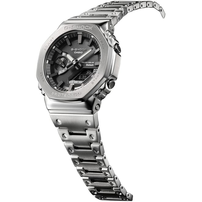 - The full-metal construction with a screw-back case, bezel, and band crafted in stainless steel creates a streamlined, minimalist design, while protecting the module from impact when dropped. We take it way back with the octagonal bezel and dimpled band design of the original from 1983, all done in metal.
