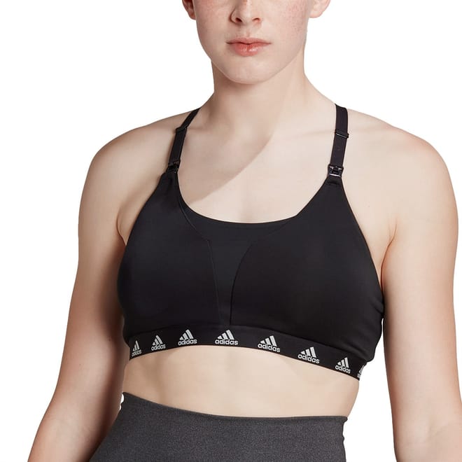 When you want to head to your barre class or do a quick workout in your living room, put on this adidas light support nursing bra. This easy-to-wear style is adjustable at the straps and hem. AEROREADY absorbs moisture to keep you dry and focused - at least until the next interruption. Made with a range of recycled materials, and at least 70% recycled content, this product represents one of our solutions to help to put an end to plastic waste. Slim fit with light support -