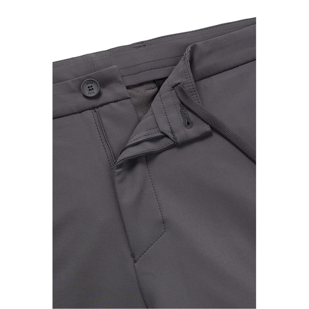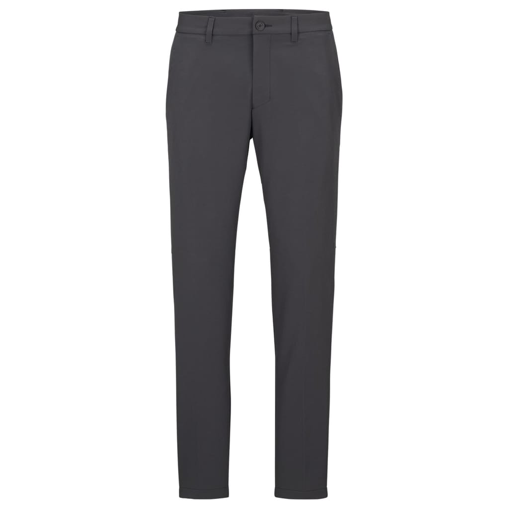 Embrace everyday style effortlessly with these Hugo Boss Commuter Slim Fit Trousers Mens from BOSS. Crafted from a lightweight fabric with a subtle stretch, they provide an extra level of comfort. The trousers are tailored to a slim fit, ensuring a balanced silhouette that is neither too loose nor too tight around the leg. -