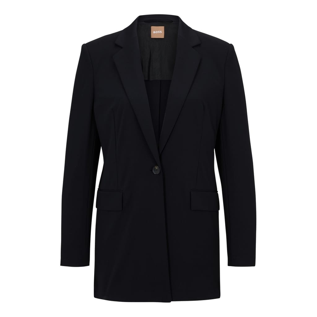 Elevate your workwear wardrobe with the Boss blazer. This solid coat from the jackets category offers a sleek and professional look, perfect for any corporate setting. -
