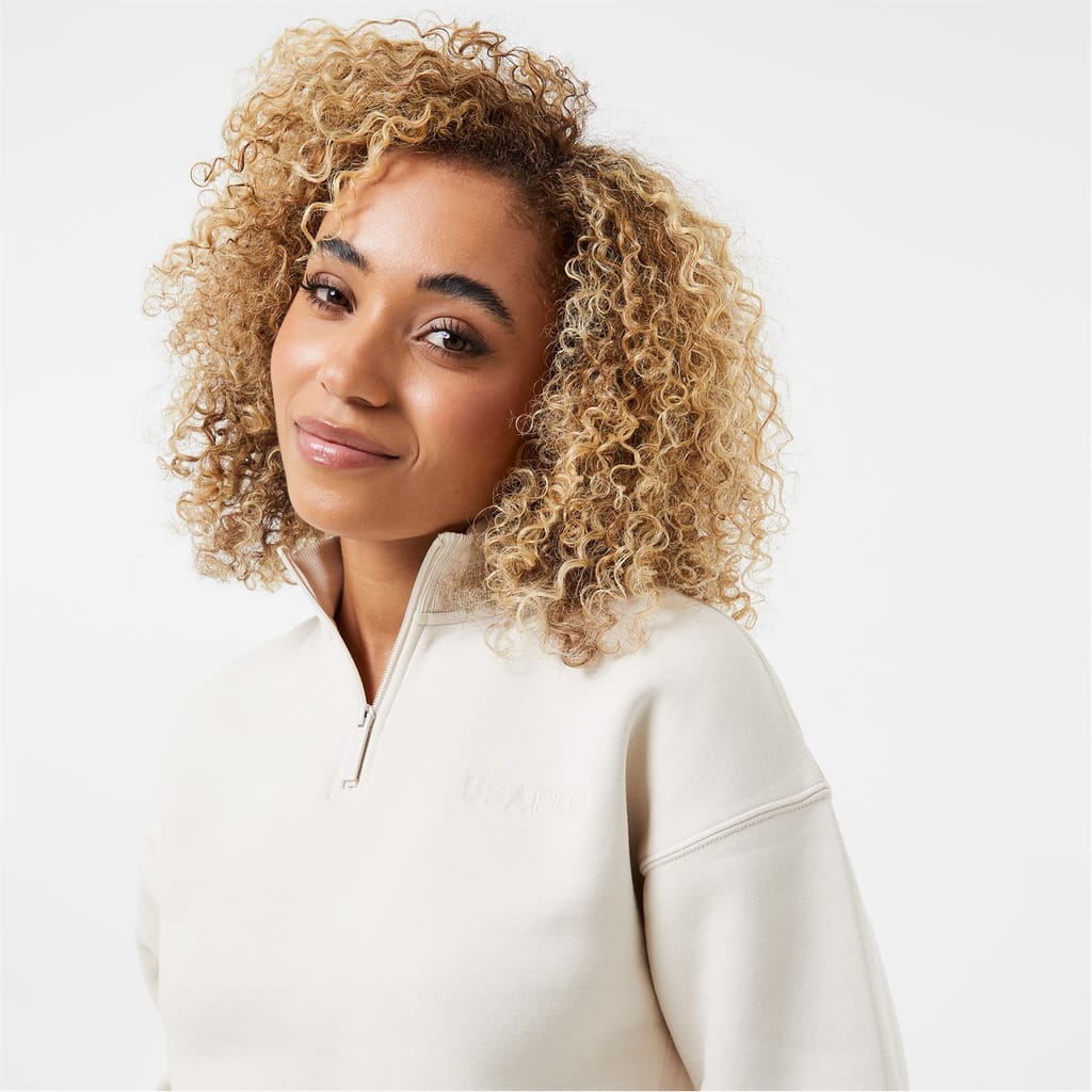 The Womens USA Pro Quarter Zip Top is a great addition to your outerwear wardrobe, featuring a lightweight fleece construction with a quarter length zip to the collar and elasticated trim to the wrist cuffs that offers a secure and comfortable fit. A solid colouring along with the classic USA Pro branding completes the look. Machine washable, follow care label instructions.