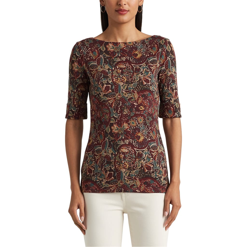 Bring luxe sophistication to your wardrobe staples with Lauren Ralph Lauren's Judy T-Shirt. Featuring the label's signature preppy monogram at the hem, this regular fit tee for women styles effortlessly into any ensemble, whether you are meeting friends for brunch, at the office, or relaxing at home.