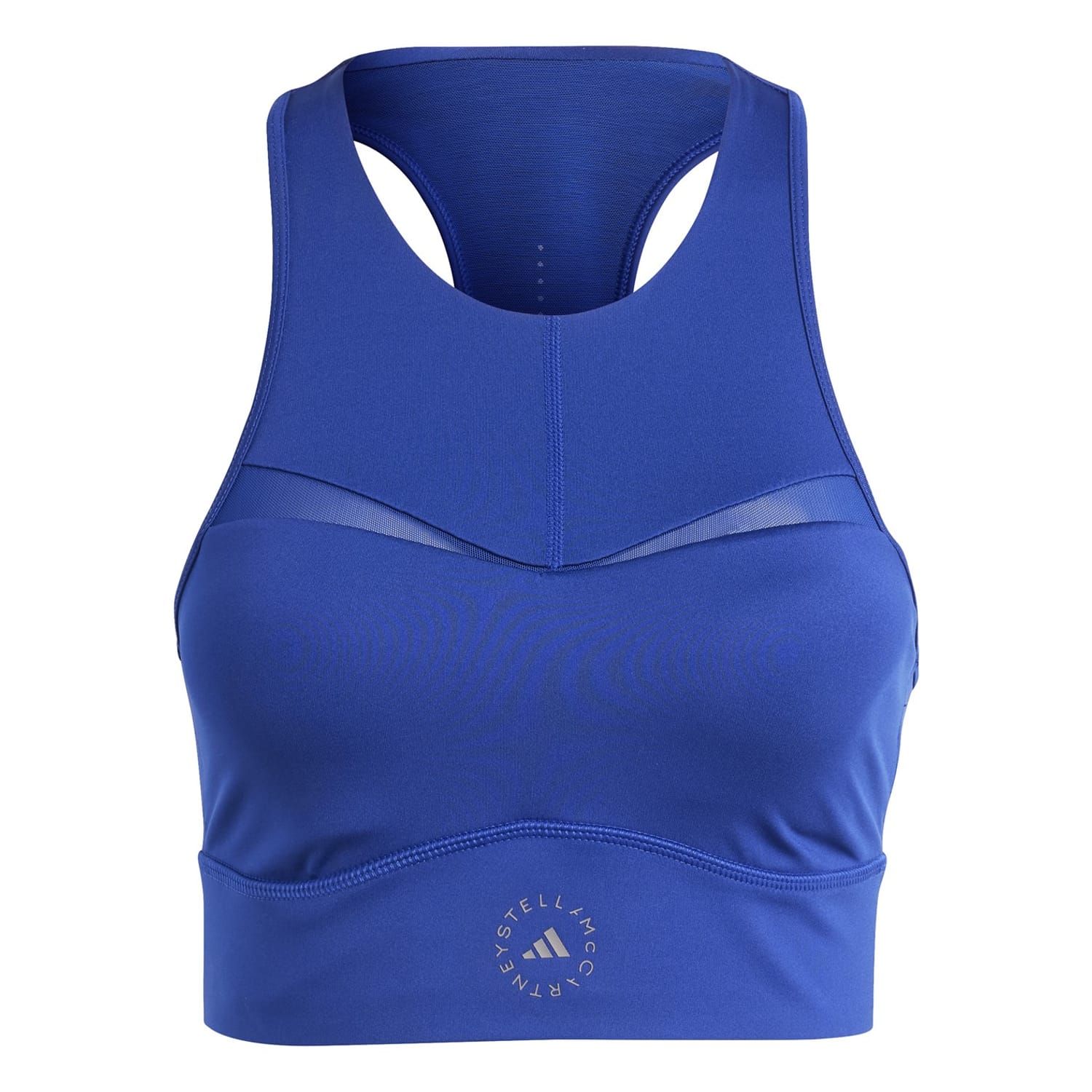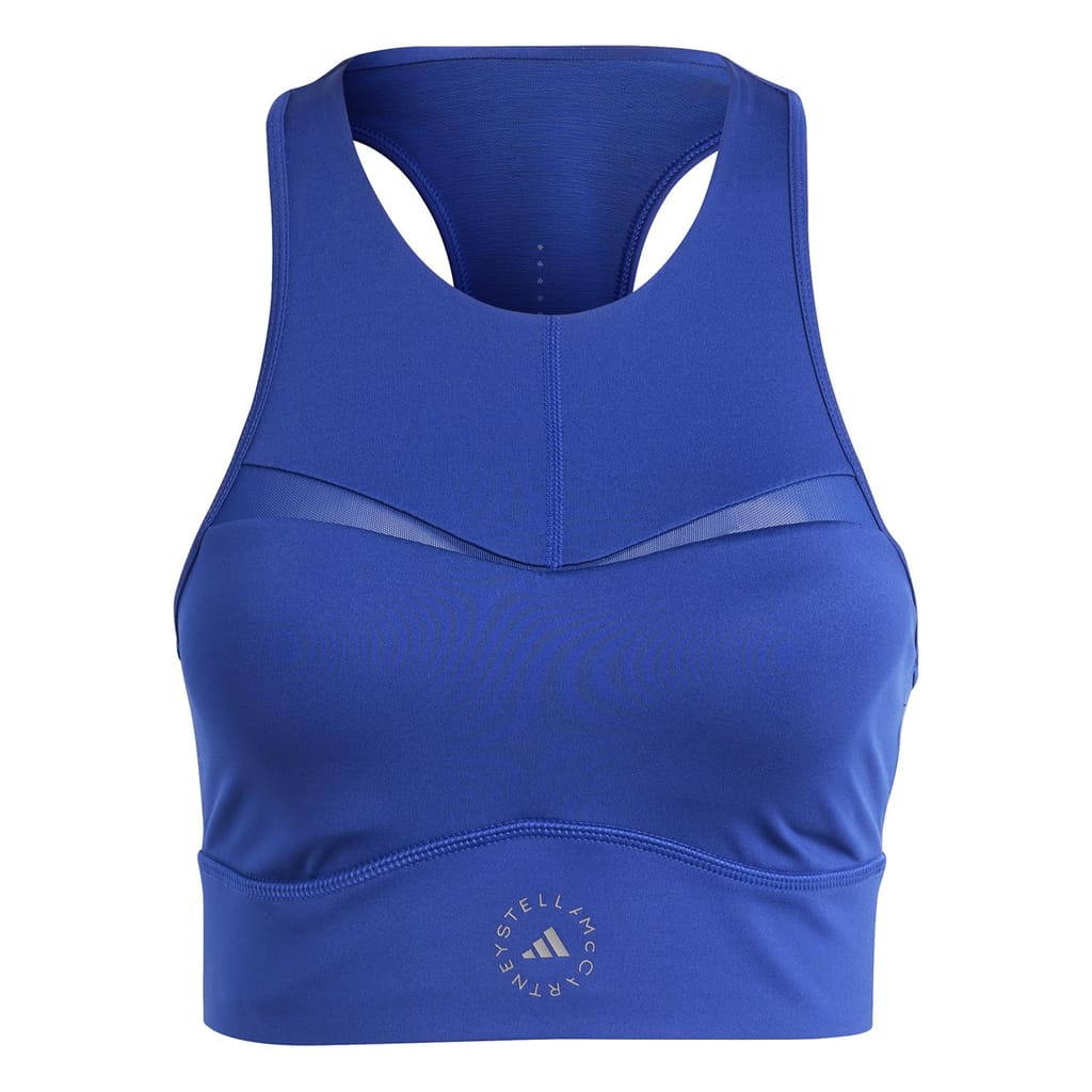 Enhance your workout with the Adidas by Stella McCartney sports bra. This sleeveless, snug fit bra features a crew neck and solid pattern, ideal for training sessions. Part of the activewear collection, it includes a logo embellishment for added style. Perfect for athletes seeking both functionality and fashion. -