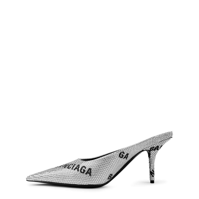 Epitomising elegance and sophistication, Balenciaga understands luxury, expertly expressed in these Square Knife crystal-embellished leather-heeled mules. Crafted with meticulous attention to detail from smooth leather, the Square Knife mules exude a seamless grace that puts a shimmering spotlight on your night-out outfit. The signature razor-sharp pointed toe, accompanied by a squared-off open back, creates a captivating juxtaposition of classic and avant-garde design elements. With its flattering stiletto heel, these cult-favourite shoes ensure a captivating allure from every angle. Embellished with all-over rhinestones and punctuated by the contrasting Balenciaga logo for a distinctive finish. -