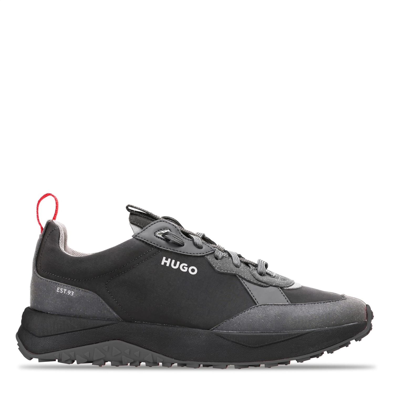 The Hugo Kane Runners are a great addition to your weekend wardrobe, featuring a shaped ankle collar coupled with two pull loops to the heel and tongue, a classic lacing system and cushioned insole that offers a secure and comfortable fit. A moulded rubber outsole offers fantastic traction on a wide range of surfaces and a colour block panel design to the upper gives a simple statement look, finished off with the classic Hugo branding to the side. -