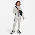 The Nike jacket is a versatile addition to your wardrobe. This tech jacket features a hood and a convenient full zipper closure for easy wear. With its raglan sleeves, it offers a comfortable regular fit. The solid pattern is complemented by a logo embellishment and a zipped pocket, adding both style and functionality to this classic piece. -