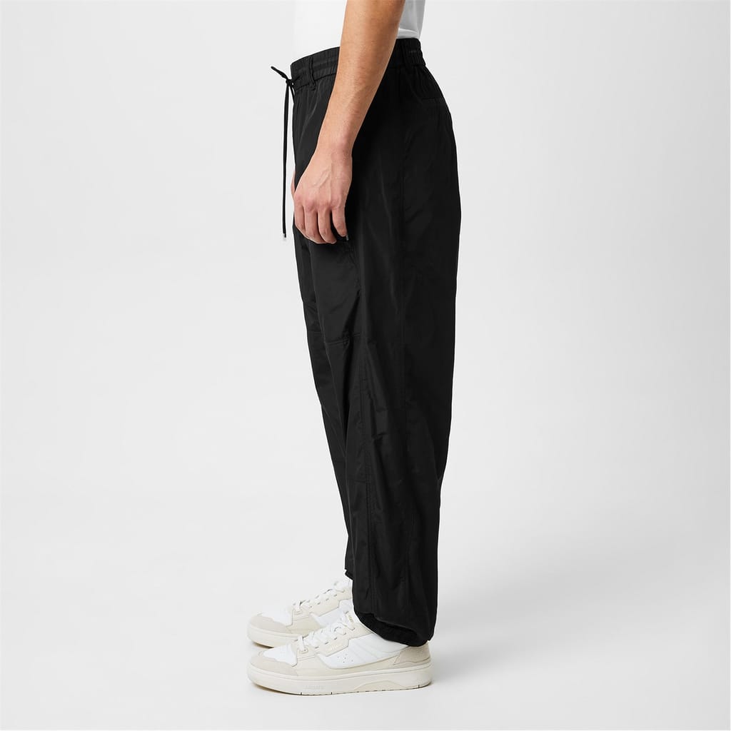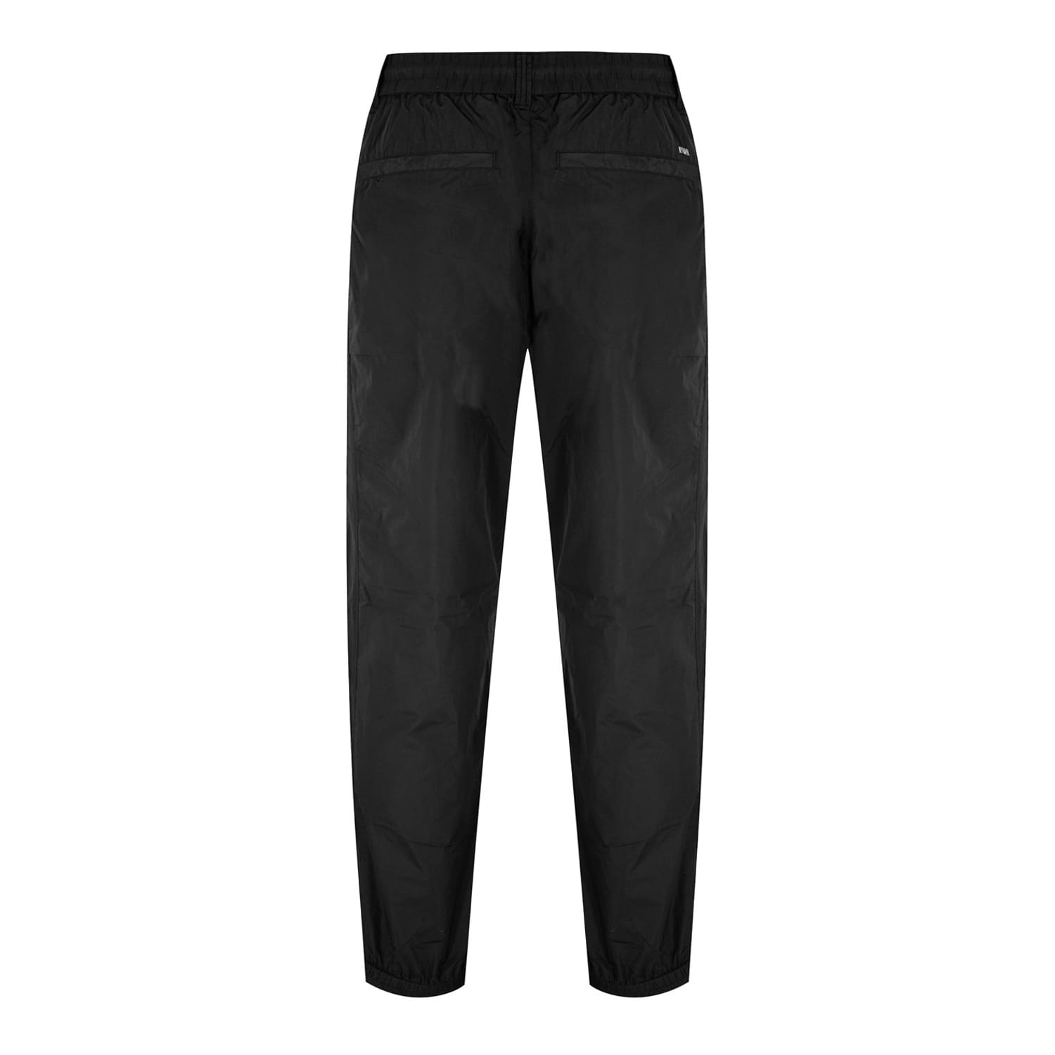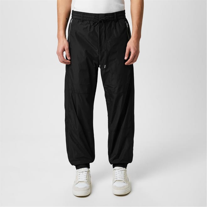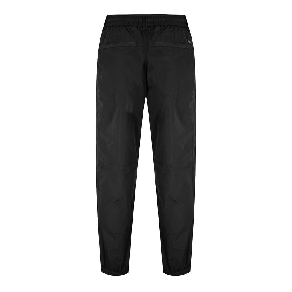 - The regular fit with a high-rise elasticated waist and drawstring fastening, guarantees a flawless blend of tailored precision and all-day ease. These full-length trousers with elasticated ankle cuffs exude a seamless fusion of classic tailoring and contemporary edge. Equipped with two side zip pockets and a discreet side zip pocket on the leg, practicality meets urban design, offering functionality and refinement. Finished with the metallic logo plaque on the rear pockets, from meeting friends to strolling through the city streets, these trousers are a choice for any occasion.