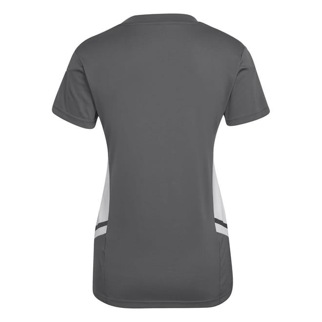 Created for top-level football, this adidas Condivo 22 jersey is all about comfortable movement. Expertly made from 100% recycled polyester creating a luxuriously lightweight appeal that is both comfortable and breathable. Its ventilating mesh side panels are shaped and positioned with female athletes in mind. Framed with short sleeves and offering a straight hem and v-neck collar this T-Shirt boasts a timeless edge. Working hard to wick moisture from your skin, AEROREADY ensures a fresh feeling fit that keeps you focused on putting your best foot forward. Designed in a classic colourway this shirt features branded trims and the iconic adidas branding printed on the left front for a prestigious finish. -