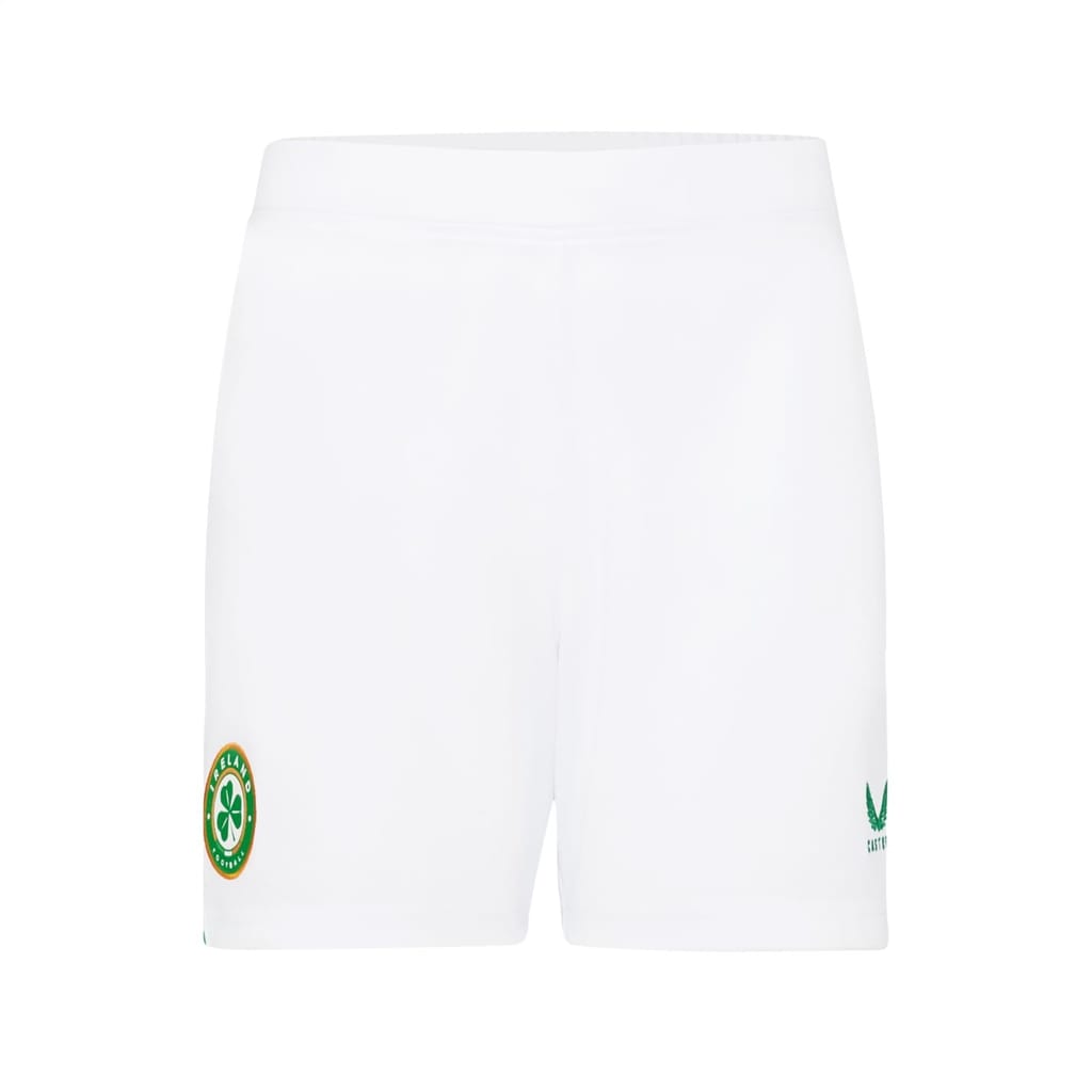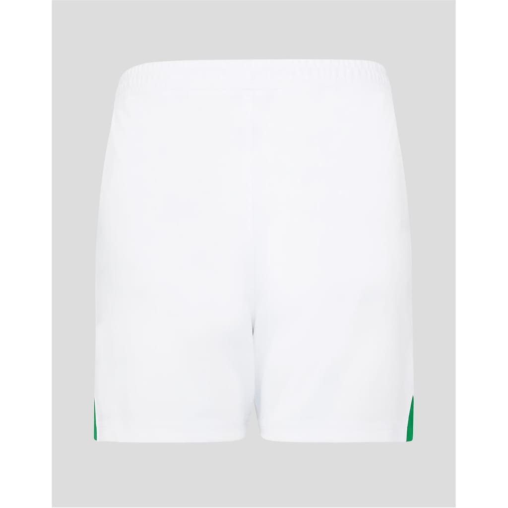 The Castore Ireland Away Shorts 2023 2024 are essential for completing the full kit look. Cut from a lightweight high stretch polyester to keep you comfortable and cool as you represent the club, the internal drawcord and elasticated waistband offer a secure fit. Landing in a fresh white colourway, the team crest and Castore logo just above the hem provides the perfect finishing touches. -