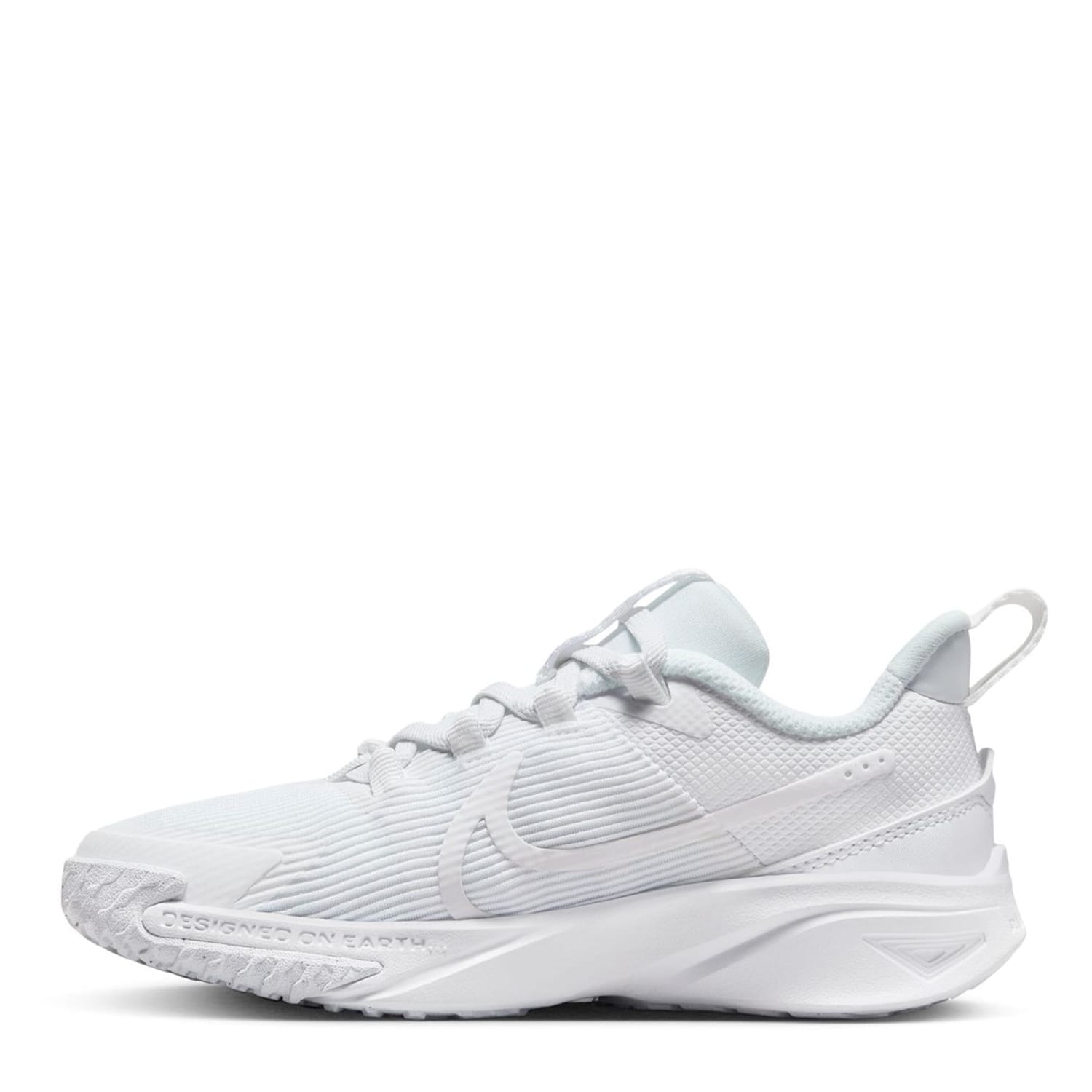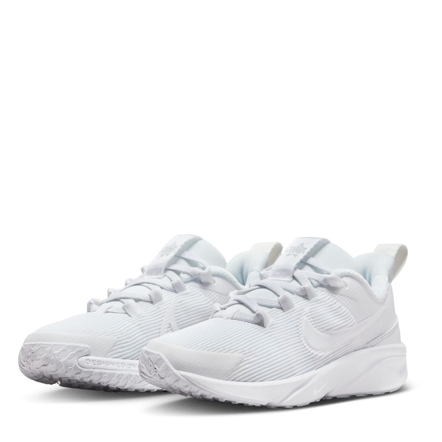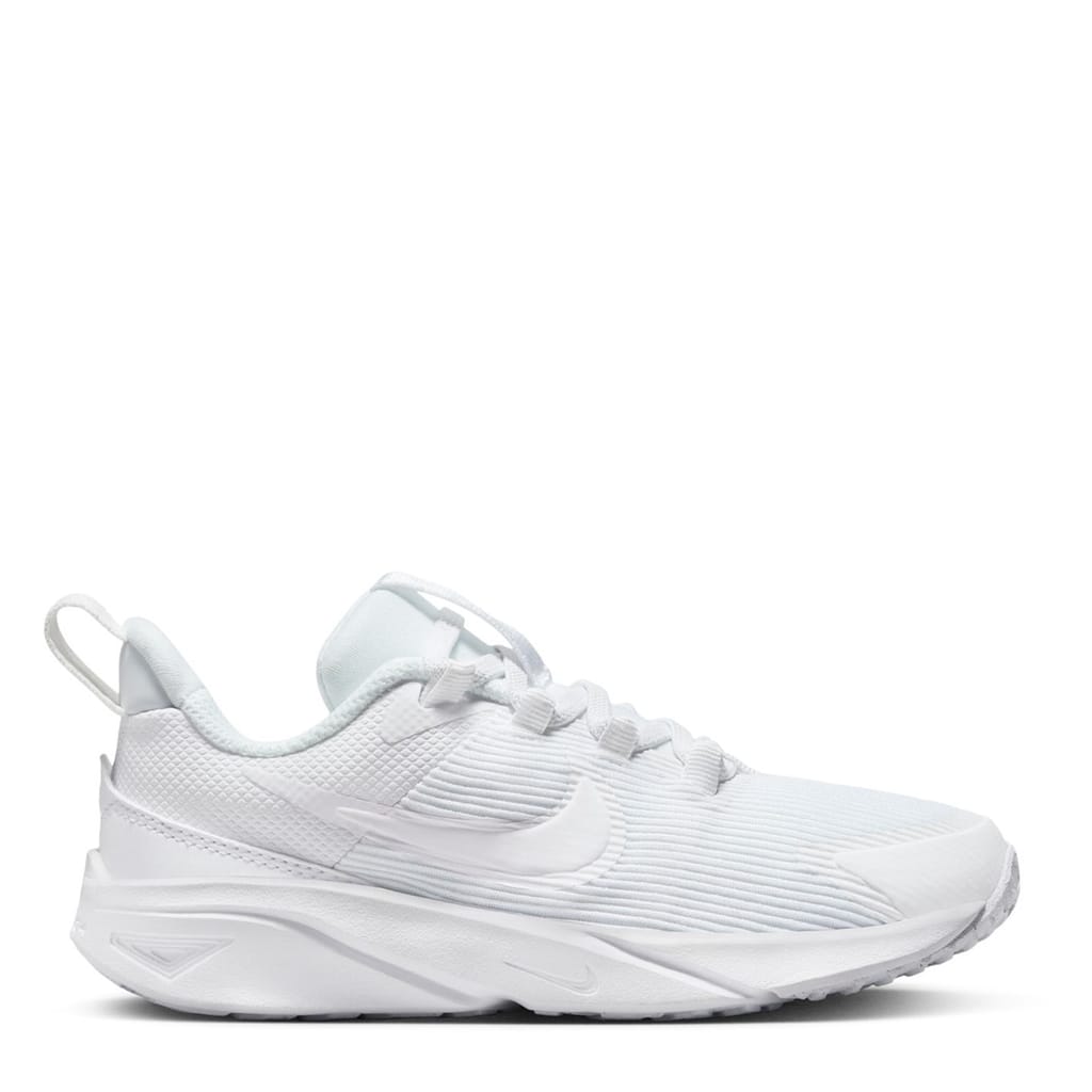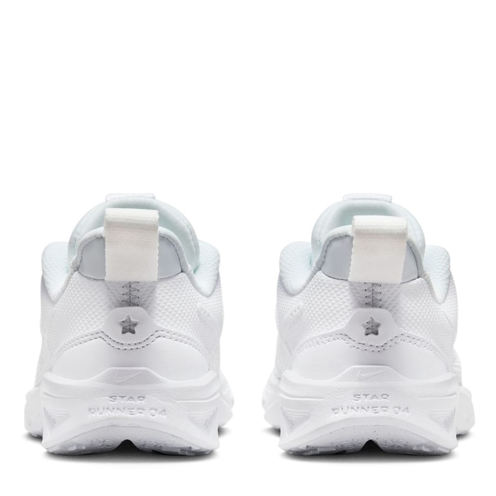 The Nike Star Runner 4 Little Kids' Shoes are a great addition to their casual wardrobe, crafted with a shaped ankle collar coupled with a large pull loop to the heel and a classic lace fastening that offers a secure fit. Lightweight cushioning to the midsole and insole coupled with a moulded outsole gives comfort with every step. A solid colouring along with tonal stitching and the classic Nike Swoosh branding to the side completes the look. -