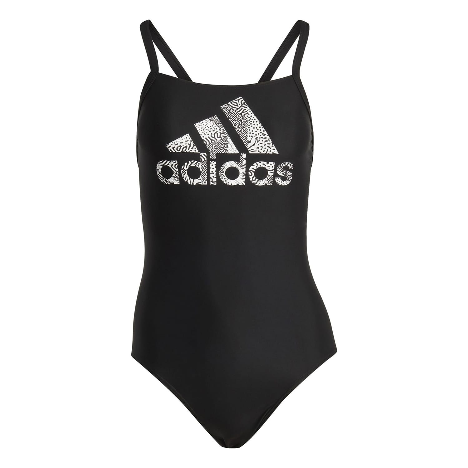 - With its training cut, the standard shoulder straps fall into an x-back, while the medium-cut neckline, back and leg are built to enhance your performance in the water. Allowing you to move freely and conquer each stroke, the iconic adidas logo is proudly printed to the chest, showing off your dedication to a fit and active lifestyle.