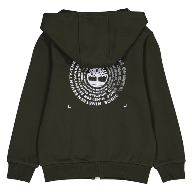 Treat your little man to this Graphic Zip Hoodie brought to you by Timberland. Skilfully cut in polycotton with a super-soft brushed lining for his comfort, this modern classic features a hooded crew neckline, a central zip fastening, long sleeves, ribbed trims to the cuffs and straight hem, two kangaroo pockets on the front, and tone-on-tone stitching. Solid block colouring makes it easy to style this top into any after-school and weekend ensemble. The contrasting Timberland logo proudly displayed on the chest ensures instant brand recognition, and the large graphic print on the back adds a stylish finishing touch. Fabric composition: 74% cotton, 26% polyester; Trimming: 95% cotton, 5% elastane. Machine wash at 30 degrees. -