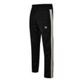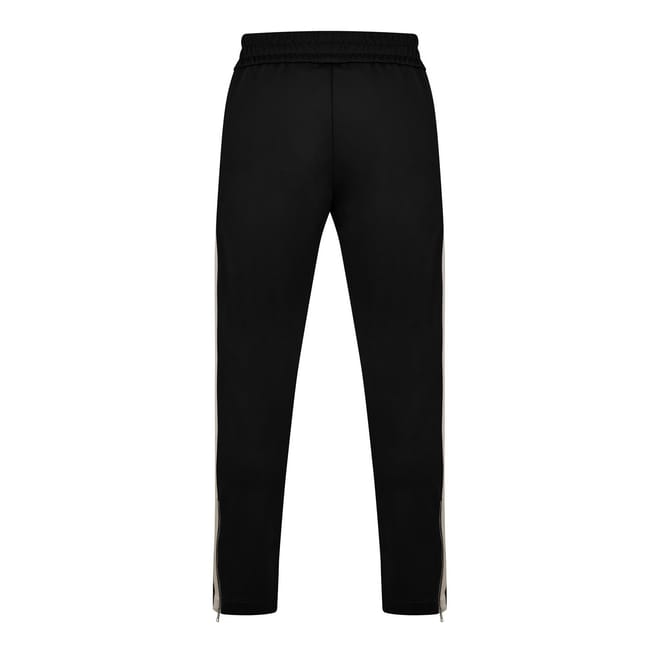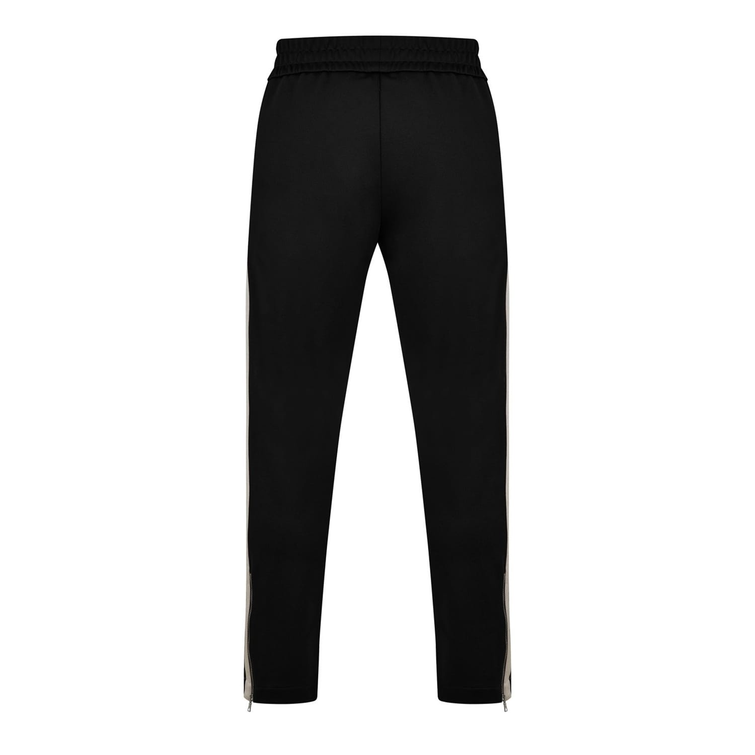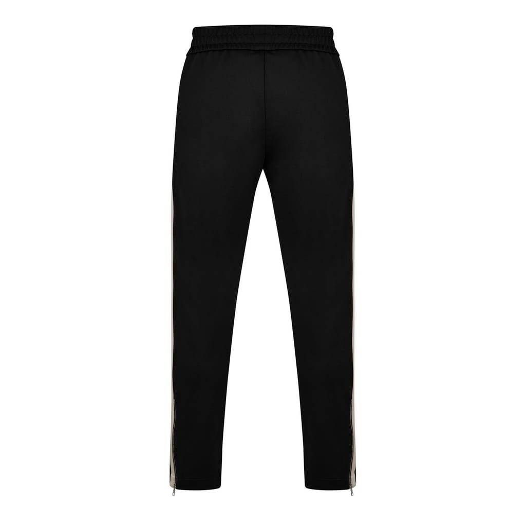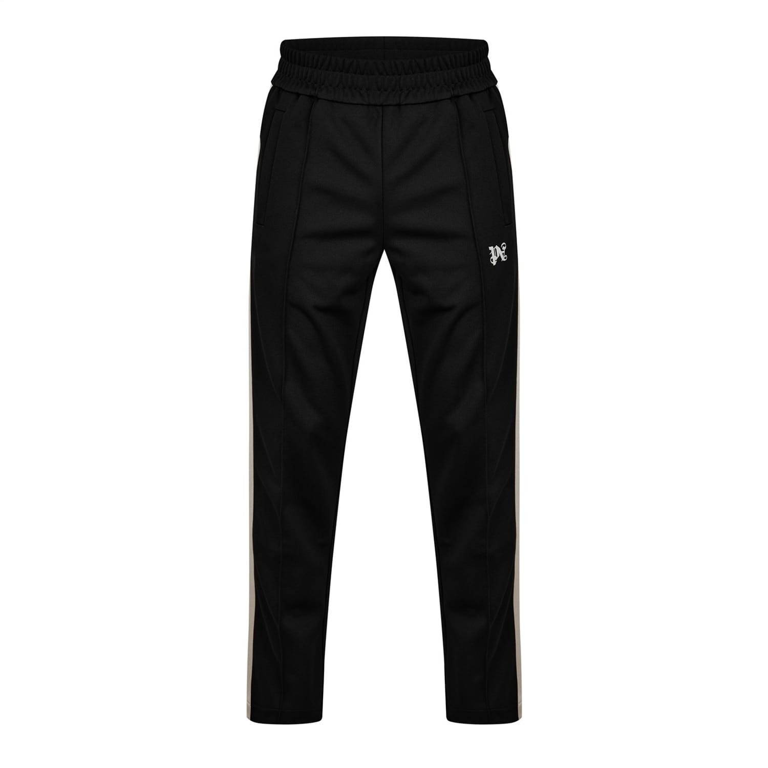 - Artful in detail, these track pants are enlivened by sporty cream stripes running down the sides, setting a striking contrast against the black fabric. The embroidered Palm Angels logo whispers prestige, echoing the house’s signature blend of streetwise edge and upscale charm. These pants, tailored to fit true to size, offer an approachable invitation into the Palm Angels l -