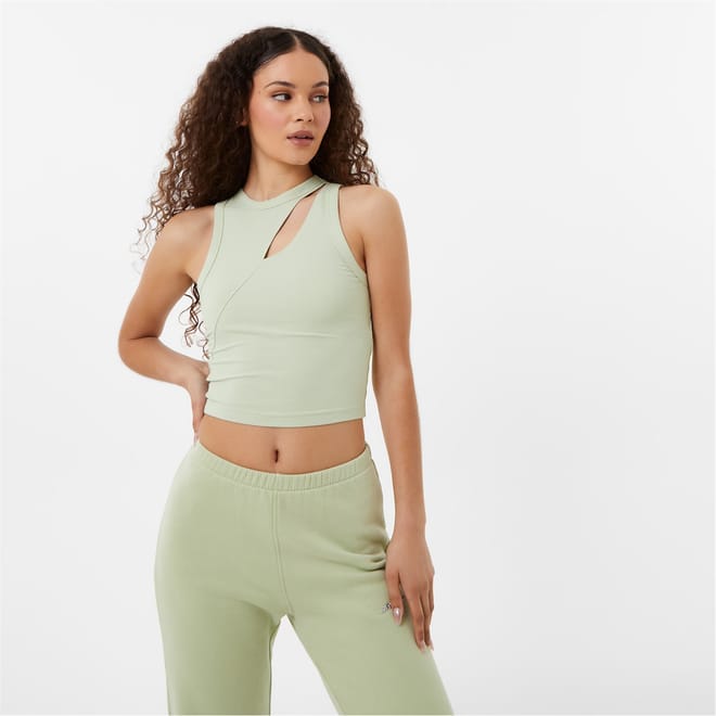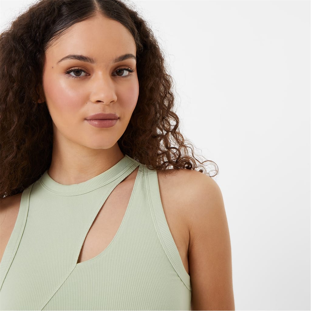This Spliced Rib Tank boast a subtly sultry day-to-night style. Crafted from a stretchy rayon jersey, this top features a soft all-over ribbed texture with a fitted round neckline, wide straps and a splice, cut-out detail at the chest for a daring twist on a classic. Defined with a solid colour block and signed off with tonal Jack Wills branding embroidered to the chest for a clean aesthetic.