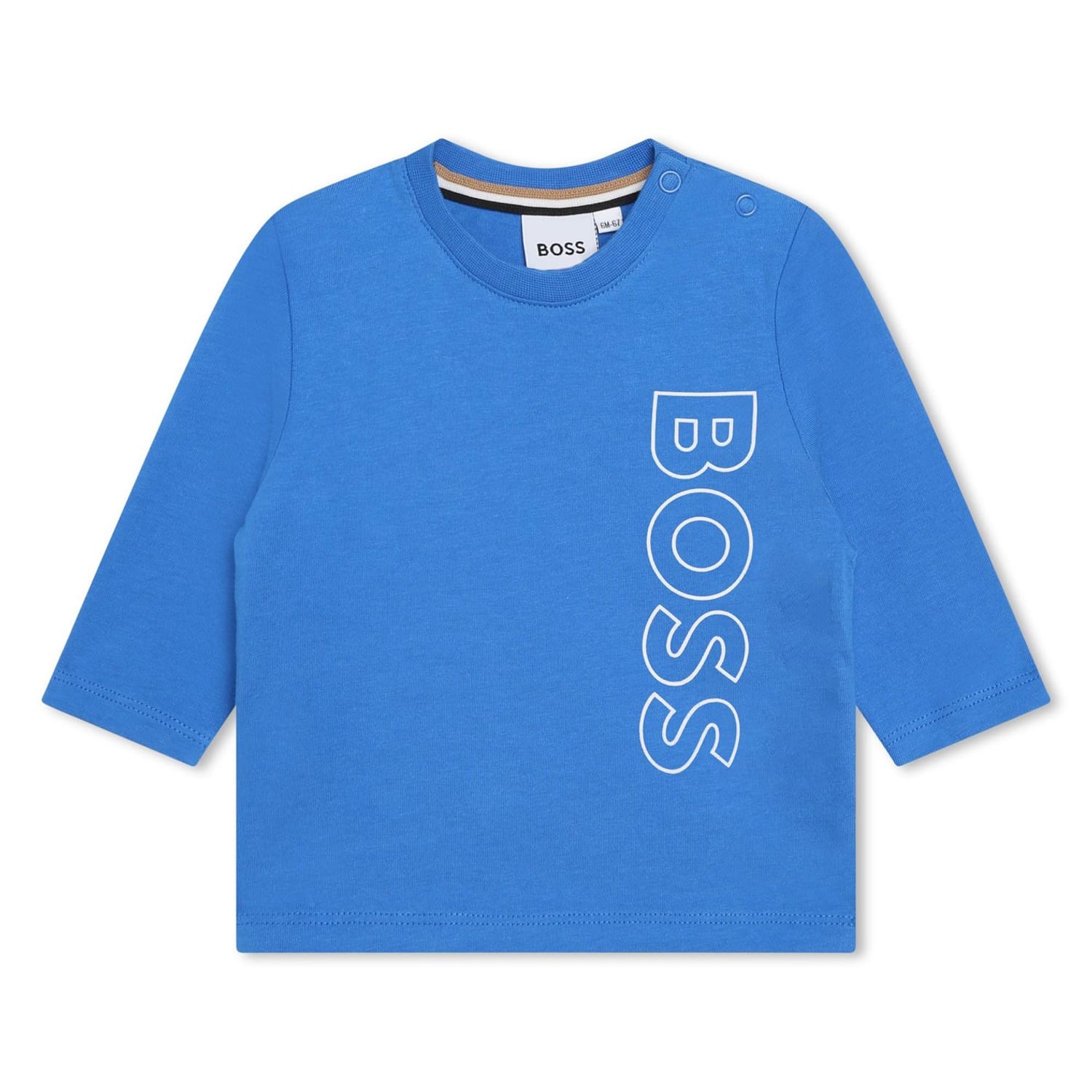 This Boss t-shirt is designed for the autumn and winter seasons. Featuring a rib crew neck and long sleeves, it offers a regular fit for comfortable wear. The solid pattern and straight hem provide a clean look, while the snap button closure and ribbed cuffs add practicality. Embellished with a subtle logo, this top is a versatile addition to any wardrobe. -