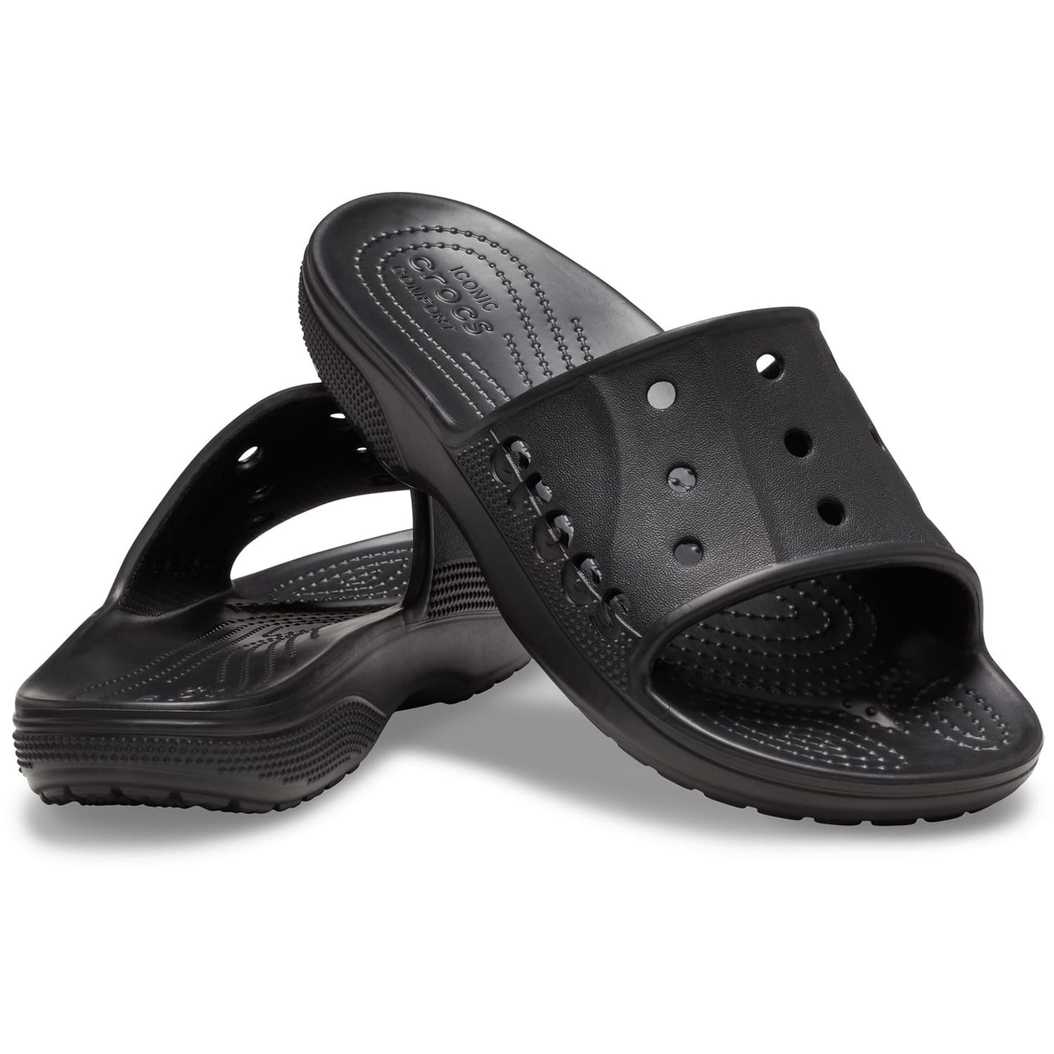 Introducing the Crocs Baya II Slides - the next level of comfort and style for the unstoppable adventurers like you! These slides take one of Crocs' best basics and give it an upgrade, resulting in a refined upper for a better fit and a sleek, modern aesthetic. The Baya II Slide still boasts the iconic fully molded Croslite™ material, providing maximum lightweight cushioning that's perfect for all your active pursuits. Not only that, but the signature ventilation ensures breathability, keeping your feet cool and fresh even during the most intense workouts. With an easy slip-on style, getting ready for your next adventure is a breeze. And here's an extra treat: the footbed nubs create a massage-like feel for your well-deserved relaxation. To top it all off, the classic branding is impeccably imprinted on the side, showcasing your dedication to quality and style. Whether you're hitting the trails, exploring the city, or simply lounging by the beach, the Crocs Baya II Slides are your trusty companions for every journey. Construction: Upper: Synthetic. Sole: Rubber. Please follow care instructions. -
