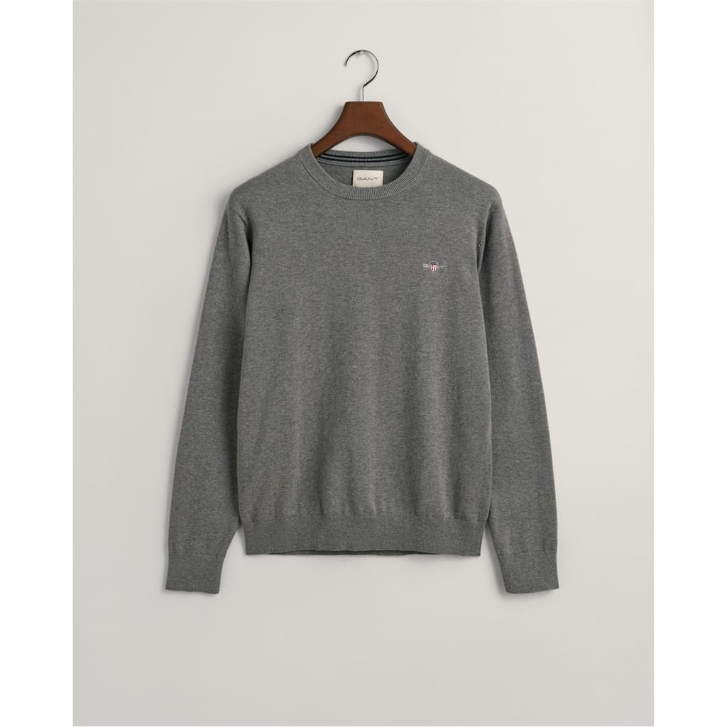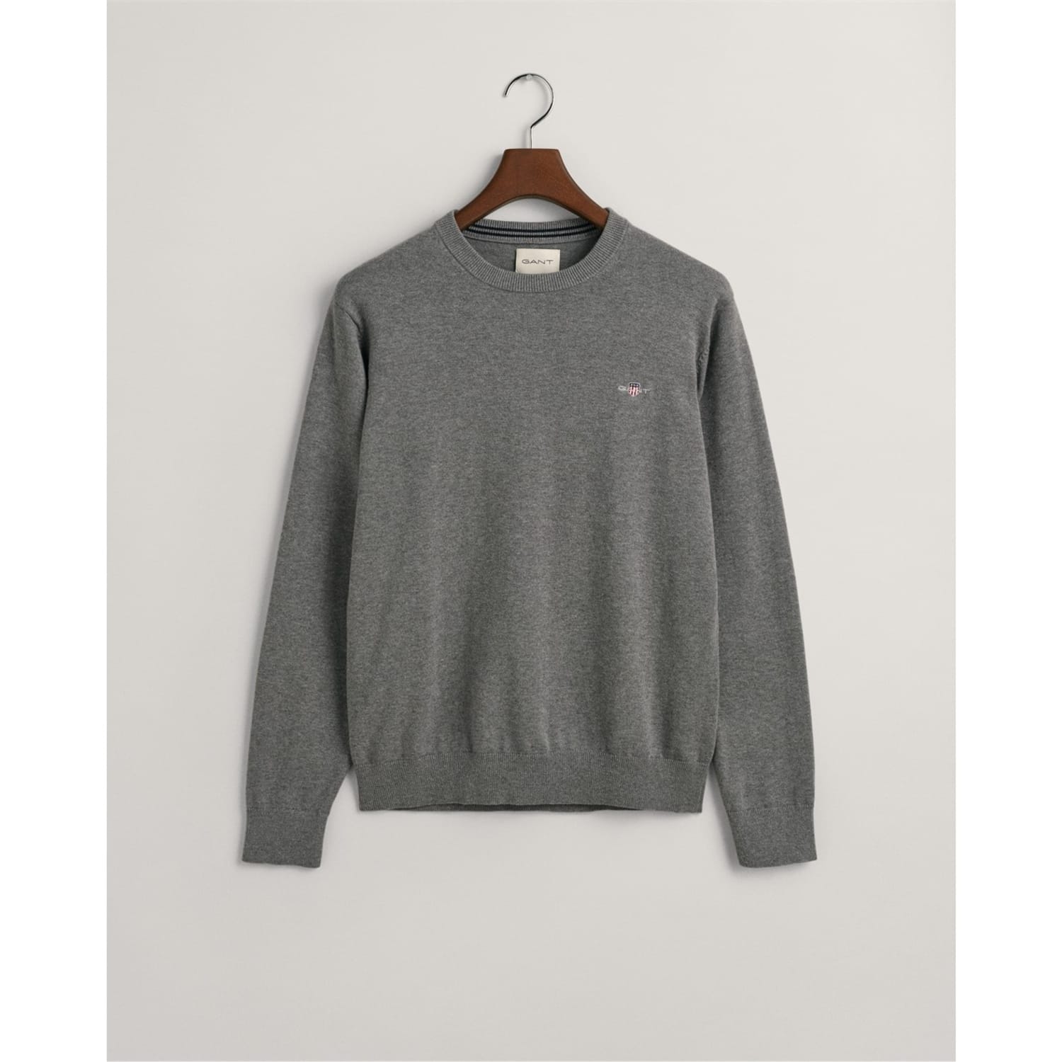 Crafted in cotton and cut in a regular fit, this crew neck sweater features a GANT shield graphic embroidered at the chest. Perfect for layering, wear it over a dress shirt with tailored pants and an elevated sneaker for a quintessential preppy look. -