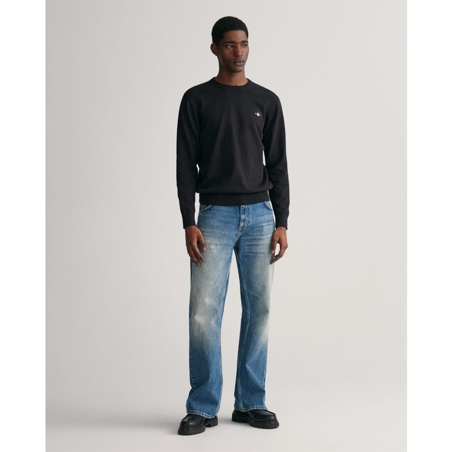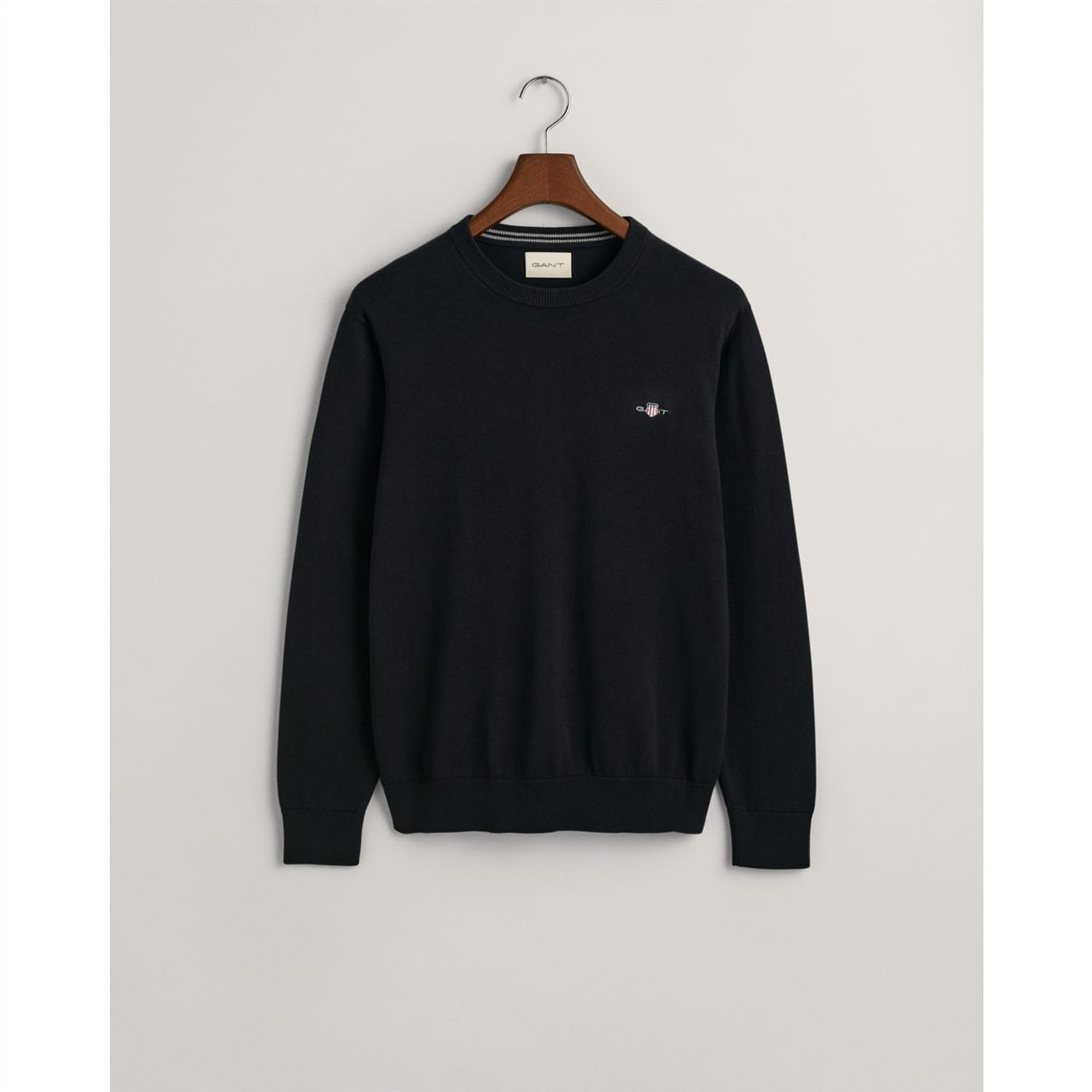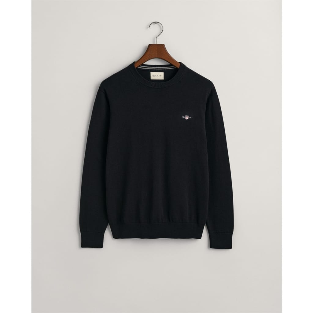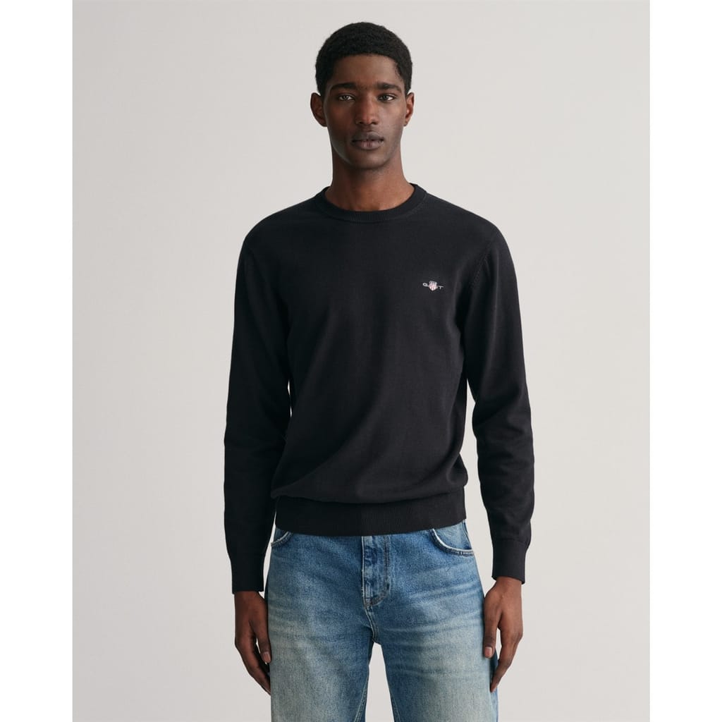 Crafted in cotton and cut in a regular fit, this crew neck sweater features a GANT shield graphic embroidered at the chest. Perfect for layering, wear it over a dress shirt with tailored pants and an elevated sneaker for a quintessential preppy look. -