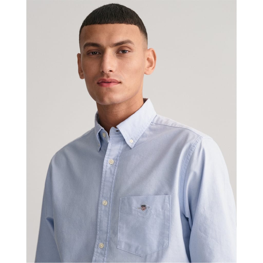 - Designed in slightly washed colourways with subtle branding on the chest adding an authentic touch. Effortlessly transitioning from casual daytime gatherings to refined evening affairs, the Gant Regular Fit Oxford Shirt is the perfect companion for any occasion. Pair with tailored trousers for a sophisticated look or with jeans for a casual appeal.