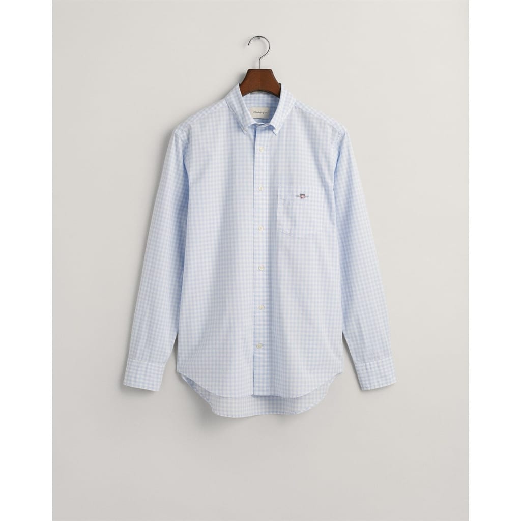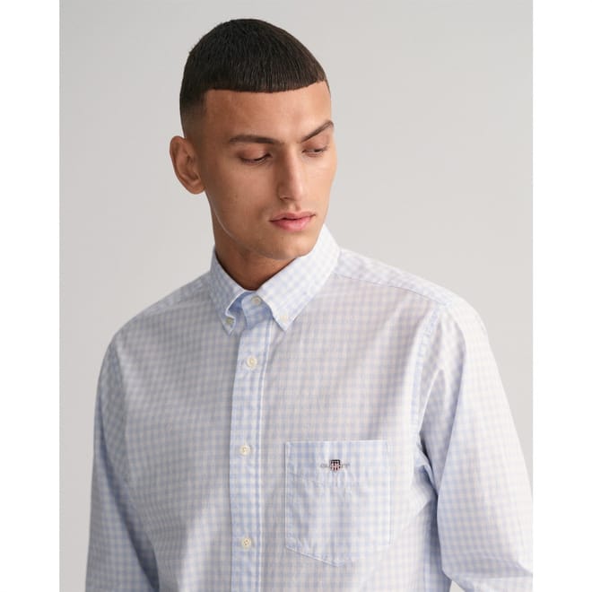 Add a timeless style to your shirt collection with our Gingham Poplin Shirt. Cut in a comfortable, regular fit and detailed with our GANT shield graphic at the chest pocket, this shirt is sure to elevate any business-casual look. -