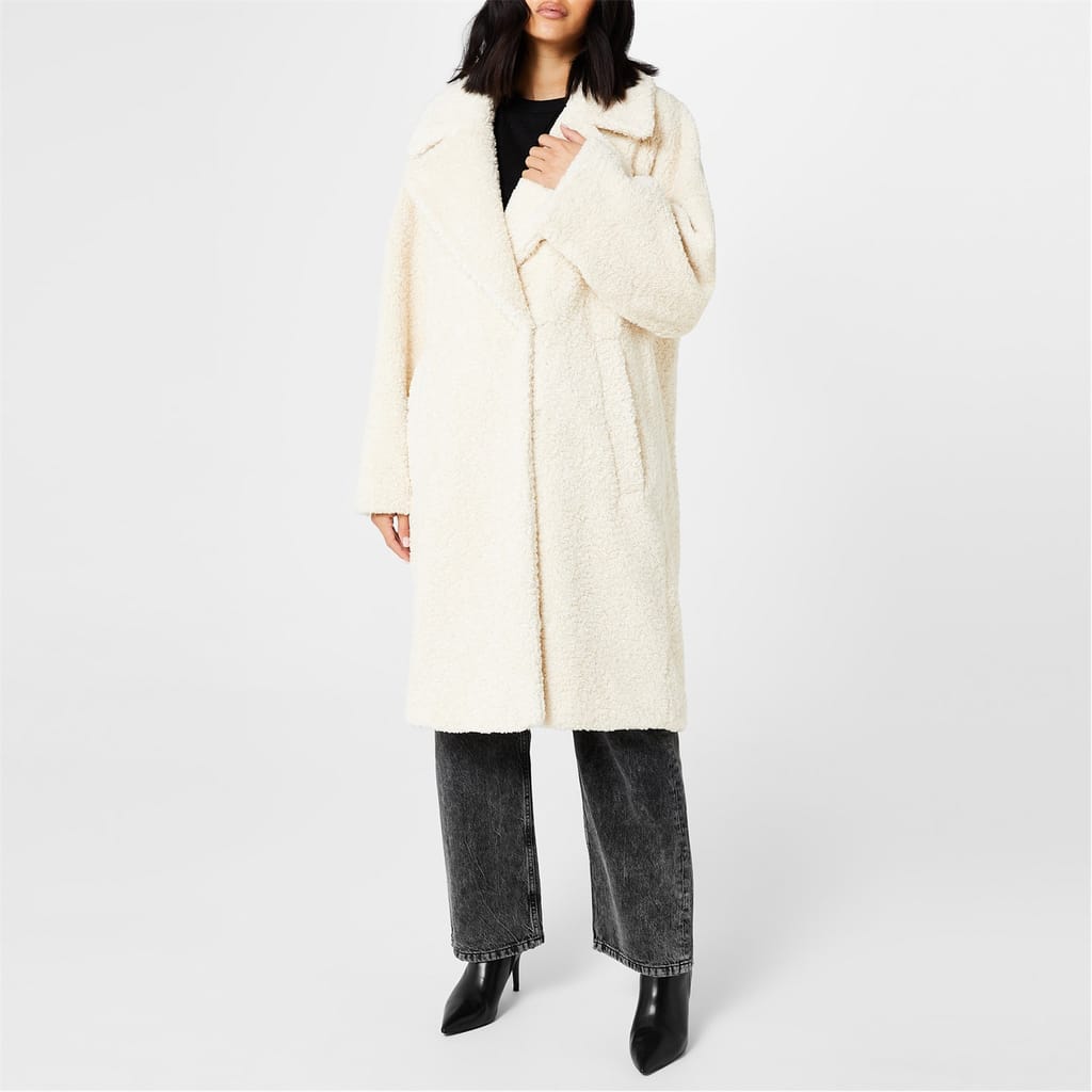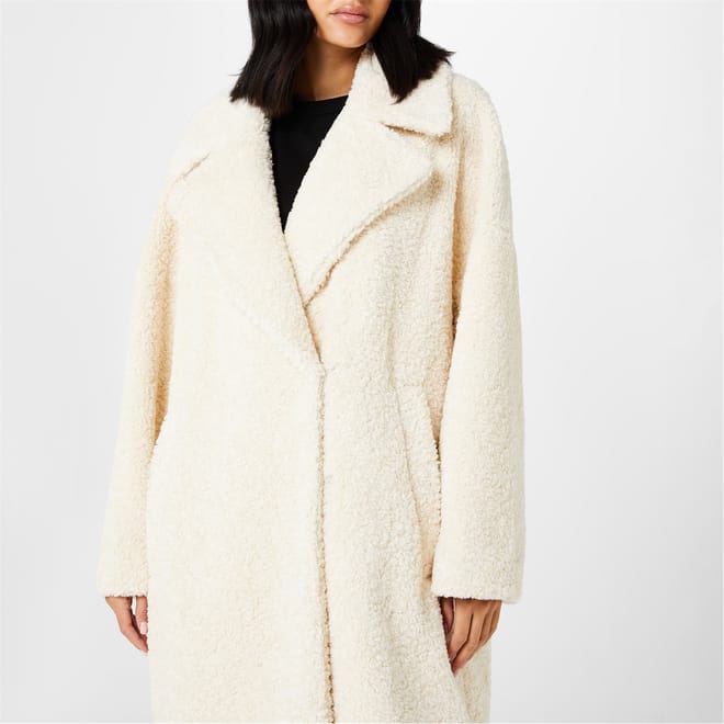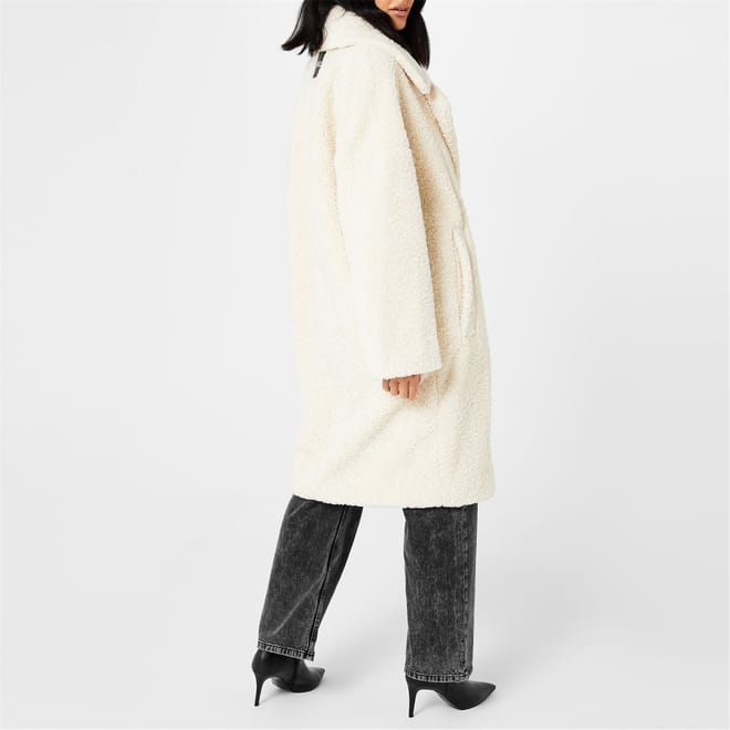 - The lightly padded polyester material ensures both warmth and comfort, making it perfect for those colder days while maintaining a refined silhouette. Indulge in the sumptuousness of this knee-length coat, expertly designed with a straight shape and luxurious oversized fit, exuding an air of effortless chic. The long sleeves and lapel collar add a touch of tailored refinement, creating a timeless aesthetic that transcends seasons. With its button fastening and inseam pockets, this coat effortlessly combines practicality and style, offering a seamless blend of form and function. Whether gracefully draped over your shoulders during a stylish evening out or worn as a cosy layer for a casual daytime look, this teddy coat is a versatile piece that effortlessly layers any ensemble. Care: Dry clean only. -