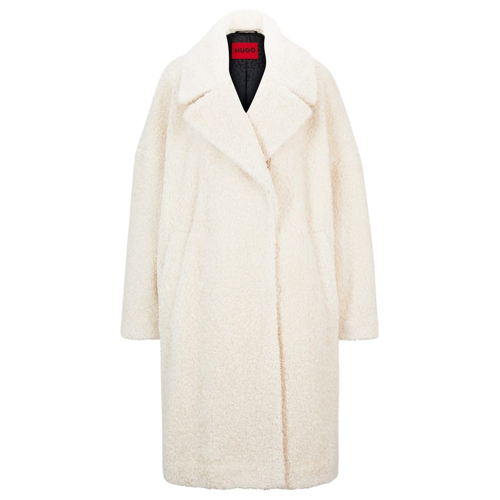 Embrace the fashion-forward individual within and experience the allure of the Mewona Teddy Coat from Hugo, your invitation to timeless style and sophistication.