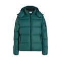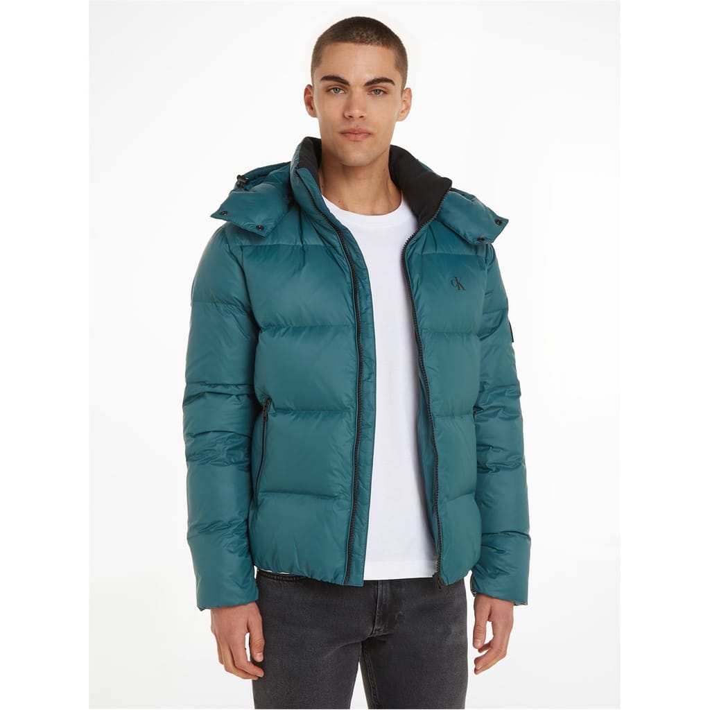 Elevate your winter wardrobe with the Down Puffer Jacket from Calvin Klein Jeans. Crafted with a 100% recycled nylon shell, this jacket offers protection against the elements and also showcases the brand's commitment to sustainability. Its water-repellent properties ensure you stay dry and stylish, no matter the weather. Designed with a solid colourway and showcasing the iconic CK logo on the chest, this puffer jacket offers sophistication. The fleece-lined collar adds a touch of luxury and warmth, while the detachable drawstring hood provides versatility. Featuring zip fastening, along with the zip pockets at the waist, it offers functionality without compromising on style. Responsibly sourced down insulation provides unparalleled warmth and comfort, while the elastane cuffs and hem ensure a snug fit, keeping the cold out and the warmth in. To complete the design, the Calvin Klein Jeans monogram badge sits proudly on the sleeve for brand recognition. Composition: Shell: 100% Recycled -