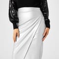 - Introducing the Biba PU Midi Skirt—a contemporary fashion piece that invites you to step into the new season with elegance and confidence. This midi skirt boasts a sophisticated faux wrap design that flatters your silhouette, making it a must-have addition to your wardrobe. With the choice of metallic silver or classic black, both featuring a Biba branded exposed zip, this skirt is not only versatile but also stylish. Crafted from high-quality PU material, the skirt offers both style and comfort, ensuring you stay comfortable throughout the day. Pair it effortlessly with the latest Biba New Season blouses or knitwear to create chic ensembles suitable for various occasions.