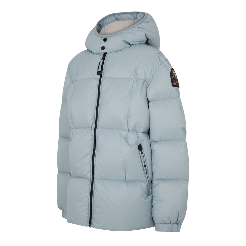 The Parajumpers puffer jacket from the outerwear collection is a heavy-weight, long jacket with a relaxed fit. Featuring a hooded neckline, zipper closure, and button closure, it is designed for both style and functionality. The solid pattern is complemented by logo embellishments and practical patch pockets, making it a versatile addition to any wardrobe. -